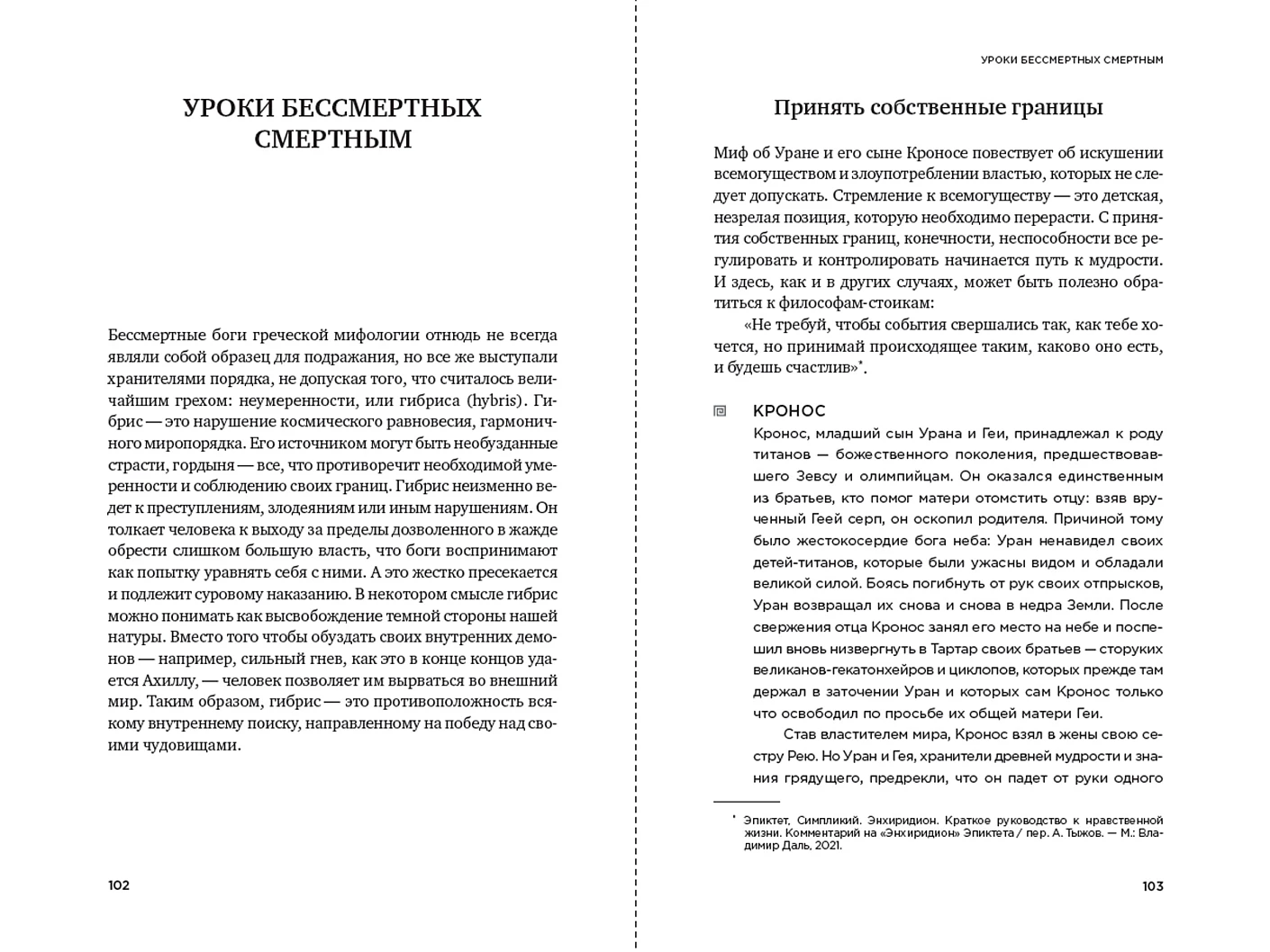 Уникальное сочетание античной мифологии и современной психологии. Автор, Ариана Билеран, проводит читателя через древнегреческие мифы, показывая, как архетипические сюжеты и персонажи отражают внутренние конфликты и вызовы, с которыми сталкивается каждый человек. Основная идея книги заключается в том, что мифы — это не просто сказки прошлого, а глубокие психологические модели, помогающие понять и преодолеть собственных «внутренних монстров»: страхи, комплексы, травмы и разрушительные импульсы.
