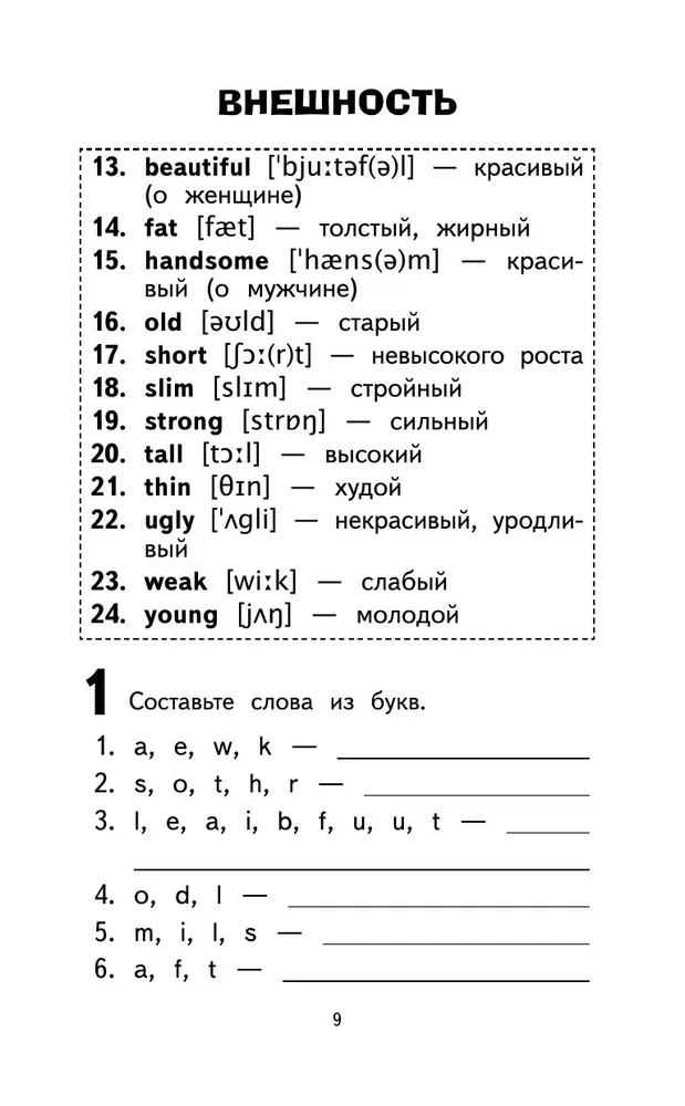 Благодаря этому пособию ребёнок выучит самые употребительные слова по основным темам, которые проходят в школе. Каждое новое слово сопровождается транскрипцией, а затем отрабатывается в занимательных заданиях.