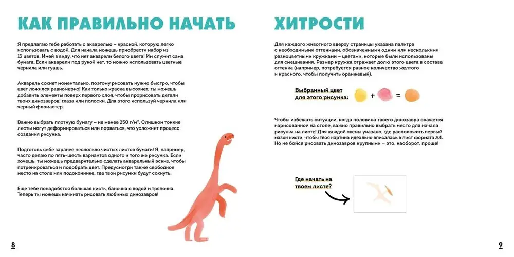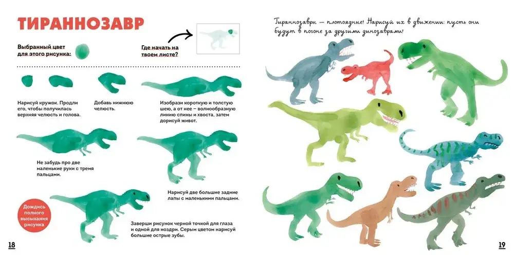 Рисовать акварелью – одно удовольствие, особенно если знать пару хитростей… Ваш ребенок обожает рисовать? В этой книге представлен простой и быстрый способ рисования симпатичных динозавриков – 5 минут и шедевр готов! Юный художник научится изображать диплодока, трицератопса, тираннозавра, велоцираптора, стегозавра, анкилозавра и многих других, даже детенышей динозавров! 26 пошаговых схем дают свободу воображению, позволяют создавать уникальные вариации и формировать собственный стиль.