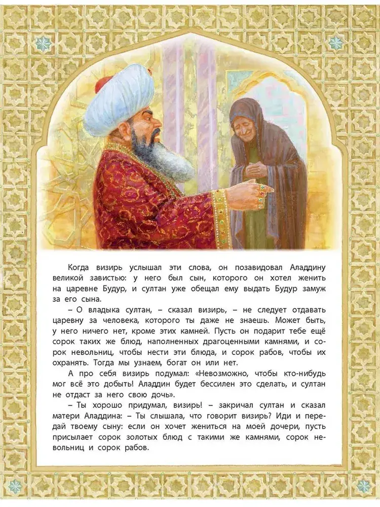 Аладдин, Али-Баба и Синдбад-Мореход – три знаменитых героя арабских сказок. Они поведают нам о своих невероятных приключениях. Каких только персонажей ни встретишь в этих историях! Прекрасные принцессы и отважные герои, джинны и дивы, птицы Рух и громадные змеи, кровожадные великаны и разбойники с большой дороги... Иллюстрации к этой книге принадлежат кисти Владимира Стахеева, чей почерк отличается изяществом, выверенностью композиции и убедительностью образов. Прихотливость восточных мотивов удивительно точно сочетается с богатой фантазией художника.