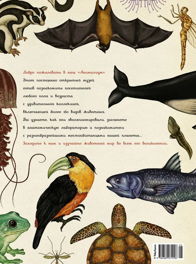 Добро пожаловать в наш «Анималиум». Этот постоянно открытый музей готов познакомить посетителей любого пола и возраста с удивительной коллекцией, включающей более 160 видов животных. Вы узнаете, как они эволюционировали, заглянете в анатомическую лабораторию и познакомитесь с разнообразнейшими местообитаниями нашей планеты… Заходите к нам и изучайте животный мир во всем его великолепии.