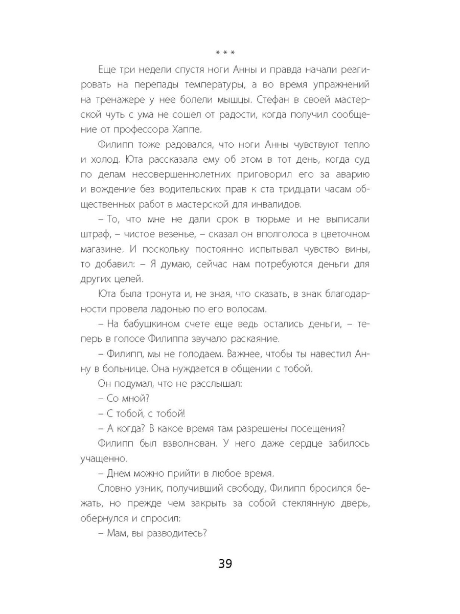 Анна, юная балерина, попала в страшную аварию. Она чудом осталась жива, но перестала двигаться. После долгих месяцев лечения и реабилитации она снова встала на ноги. Анна тяжело переживала свое увечье и даже не думала, что когда-нибудь сможет вернуться в балет. Но воля и упорство девушки, а также поддержка верного друга в инвалидной коляске совершили чудо. И вот уже Анна - лучшая ученица в балетной школе; ее талант высоко оценивают знаменитые в прошлом балерины. Пришло время - и Анна дебютирует на большой сцене. Это повесть о мужестве, преодолении отчаяния, о взрослении и, конечно, о любви. Юстус Пфауэ (1942-2014) - немецкий писатель и сценарист, автор захватывающих романов для всей семьи. Драматическая и трогательная история Анны была экранизирована; телесериал 1987 года до сих пор популярен в Германии и Австрии. Для старшего школьного возраста.