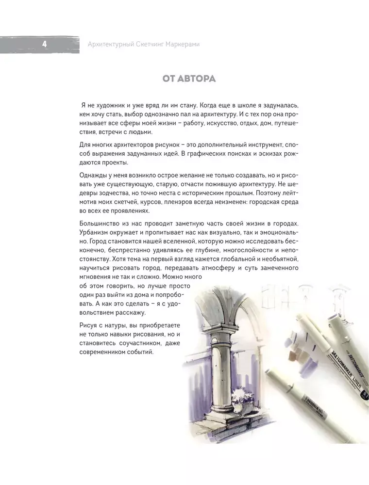 – изучите основы рисования архитектуры: от первой линии и штриха до построения сюжета и создания текстуры;