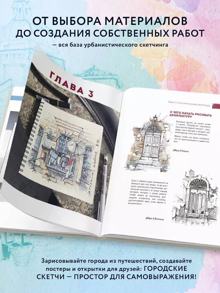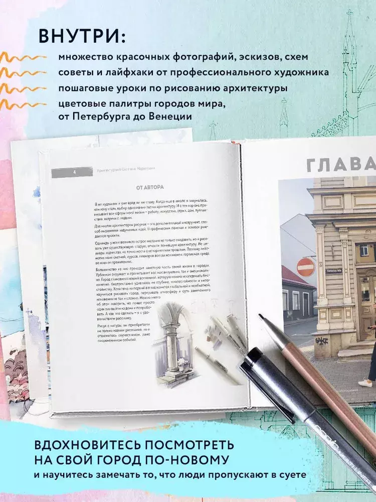 – создадите собственные архитектурные зарисовки по простым пошаговым урокам и узнаете о цветовых палитрах городов мира: Санкт-Петербурга, Стамбула и Венеции.