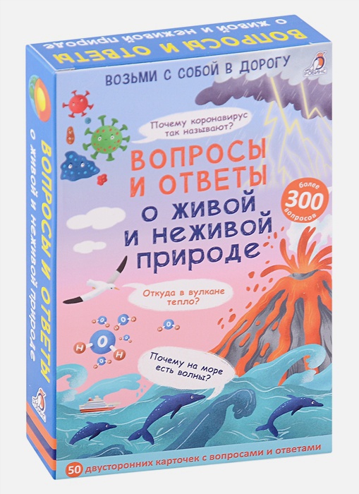 В набор входят 50 двусторонних многоразовых карточек с вопросами и ответами на самые часто задаваемые и необычные вопросы об окружающем мире. Почему трава зеленая? Чем дышат растения? У какой ягоды семена расположены снаружи? Что такое железное дерево? Бывают ли вирусы у растений? Почему вода в море соленая? Есть ли в Антарктиде вулканы? Почему дует ветер? Какое море не имеет берегов? Какой остров самый большой на земле? Как образуются горы? Сколько весит кучевое облако? Какой континент содержит две трети пресной воды на Земле? Как связаны гром и молния? Почему от лука слезятся глаза? Всегда ли цвета радуг идут в одном порядке? Играя с карточками, ребенок узнает интересные факты о растениях, грибах, природных явлениях, микромире, живой и неживой природе, а также будет развивать память, внимание, логику, мышление и другие важные навыки. В чём особенность набора: Каждая карточка – это интересная задачка и яркая картинка. Размер карточек 15 х 11см. Благодаря удобному формату карточки можно брать с собой в дорогу. Карточки сделаны из картона и покрыты защитной плёнкой. Занятия с набором способствуют развитию внимания, памяти, логики, мышления, а также расширяют кругозор. Что найдем внутри: 50 двусторонних карточек с вопросами о живой и неживой природе, ответами и пояснениями к ним. Важно знать родителям: Набор карточек предназначен для детей от 3 лет, но также подойдет для детей дошкольного и школьного возраста и взрослых. Рекомендовано как для индивидуальных, так и для групповых занятий, а также для игр в семье, в компании и в поездках.
