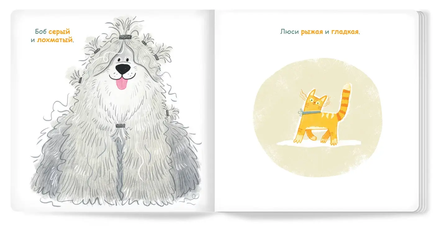 Большой пёс Боб и маленькая кошечка Люси живут в одном доме. Озорной Боб обожает есть котлеты и резвиться под дождём. Послушная Люси любит быть дома и лакомиться рыбкой…
