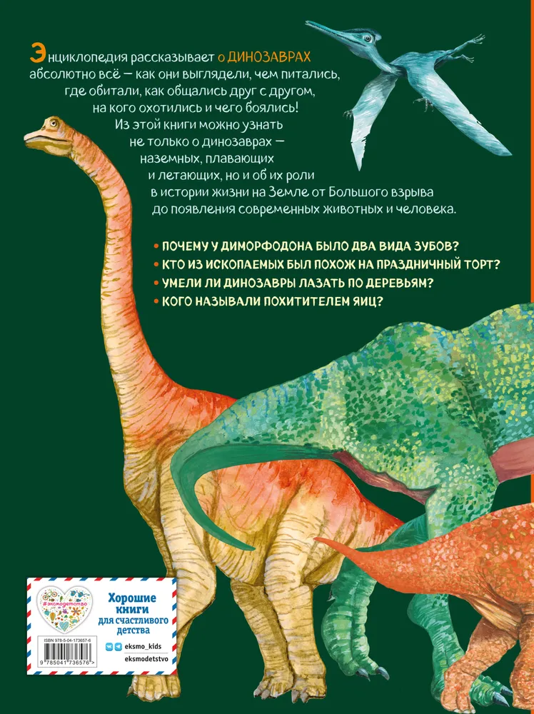 Эта энциклопедия должна быть у каждого любителя динозавров! Разнообразная информация и современные иллюстрации обязательно привлекут к книге интерес школьников, ведь здесь собрано всё самое интересное о хищных и травоядных древних ящерах: как долго они царили на Земле, почему вдруг исчезли, каким был мир в эпоху мезозоя, как учёные восстанавливают облик доисторических обитателей нашей планеты и многое другое. А ещё энциклопедия станет замечательным подарком по любому поводу!