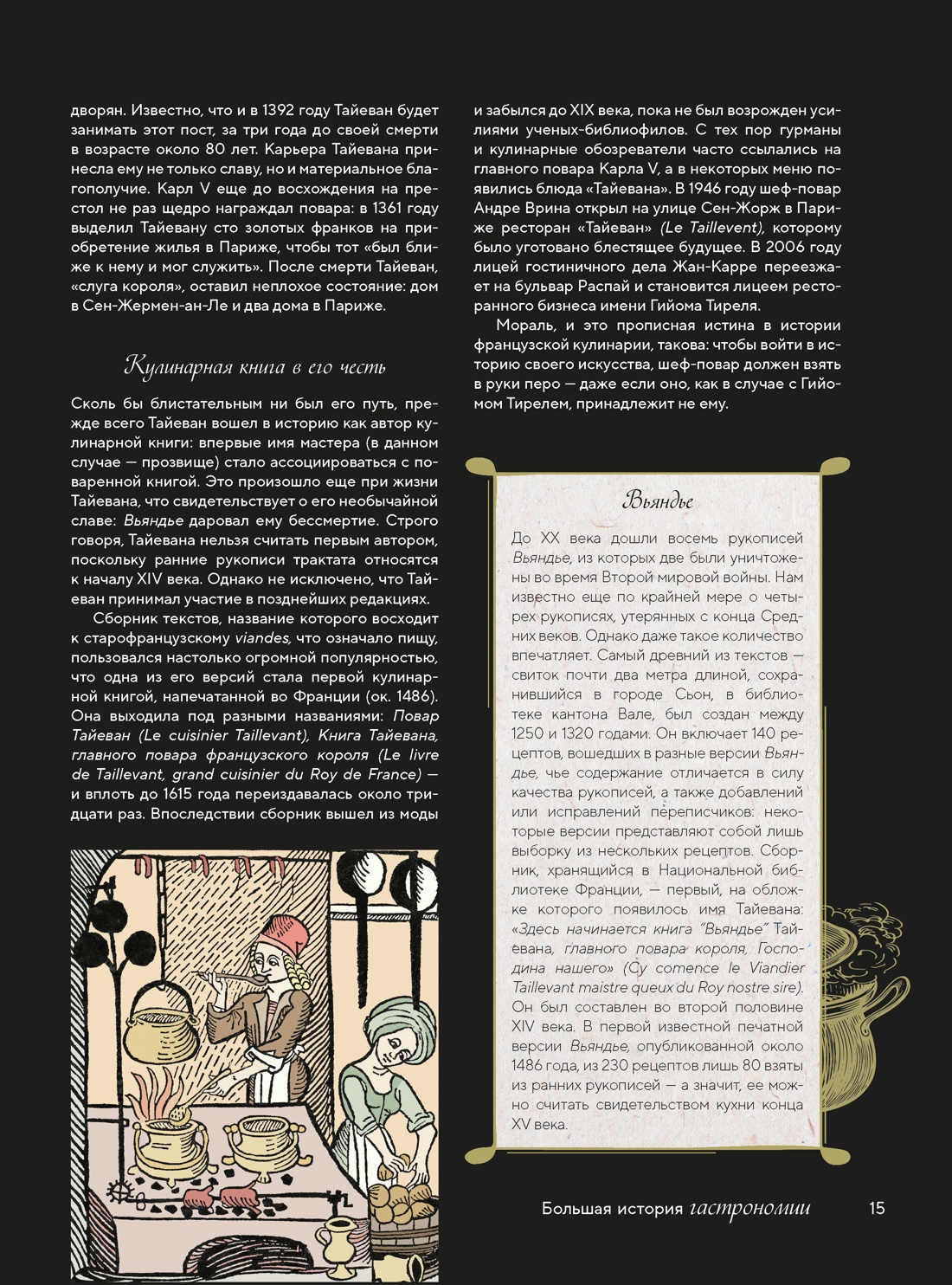 От ароматов средневековых пиршеств и шумных улочек Ренессанса до блеска отеля «Риц» и изысканности современных ресторанов – известный историк Лоик Бьенасси проведет вас по главным эпохам французской гастрономии, ставшей эталоном для гурманов со всего мира.Вы узнаете, какими были на вкус средневековые блюда, как Мари-Антуан Карем создавал свои архитектурные десерты, а Огюст Эскофье навсегда изменил представление о высокой кухне. Вы научитесь отличать тарты от туртов, пате от паштета и даже попробуете их приготовить. Вы прикоснетесь к жизни европейских государей, эпатажных поэтов, бюрократов, рабочих, студентов, куртизанок и бедняков через их вкусовые пристрастия. В этой книге развенчаны все мифы и легенды, которыми окружена французская кухня, а ее история рассказана без прикрас – разве что слегка припудрена юмором.Попробуйте искусство на вкус и насладитесь его историей – историей французской гастрономии!
