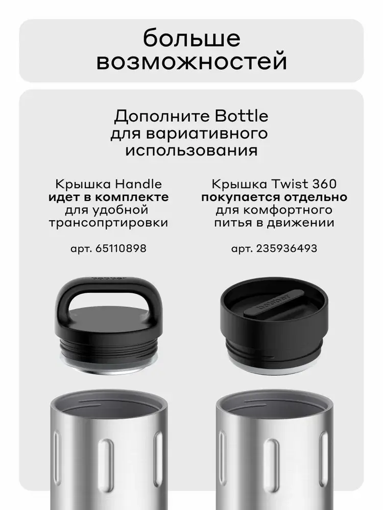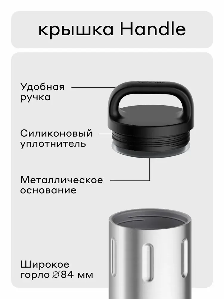 Универсальный вакуумный термос с керамическим покрытием. Объем 770 мл, сохраняет тепло до 10 часов, холод — до 20 часов. Съемная крышка Handle Cap выполнена из безопасного пластика BPA-free, силиконовые уплотнители — из пищевого силикона. Крышка имеет металлическое основание, которое не накапливает запахи и защищает напиток от контакта с платиком. Крышка также обеспечивает 100% герметичность изделия.
