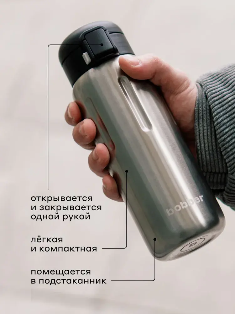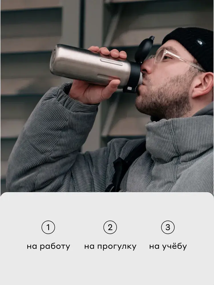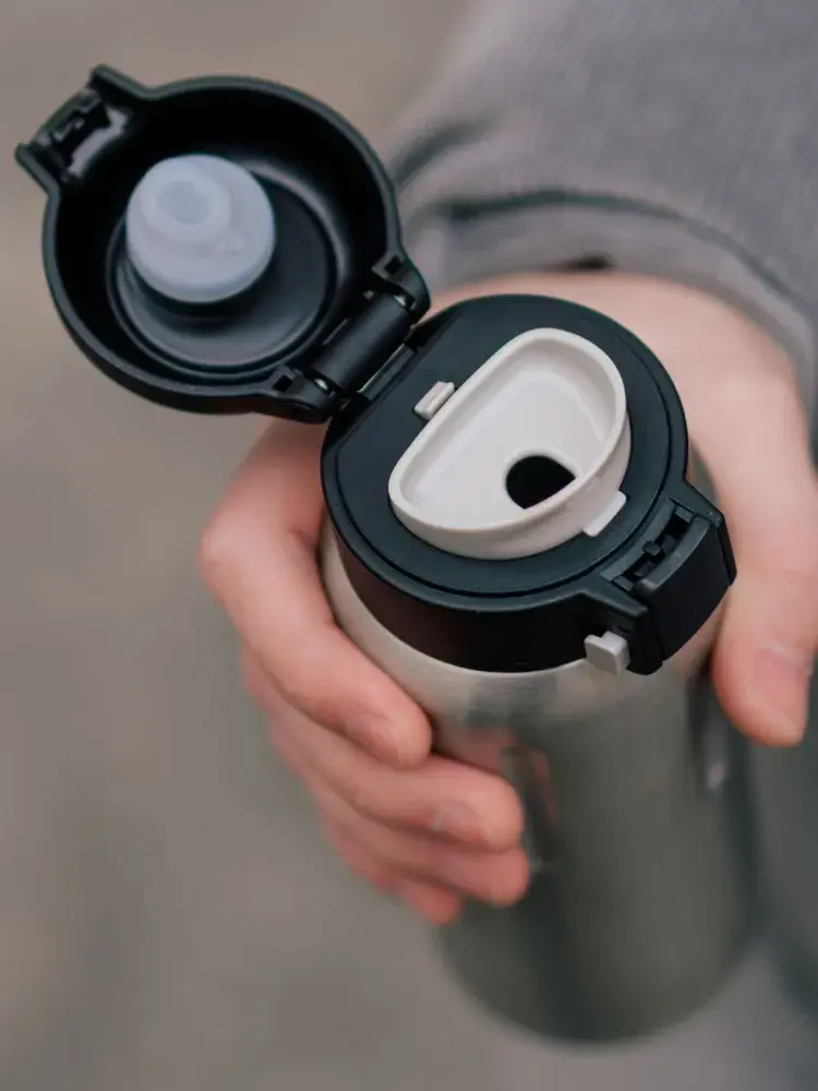 Универсальная вакуумная термокружка с закрытой питьевой системой и надежным фиксатором. Подойдет для города, путешествий в машине и своим ходом, а также для занятий спортом.