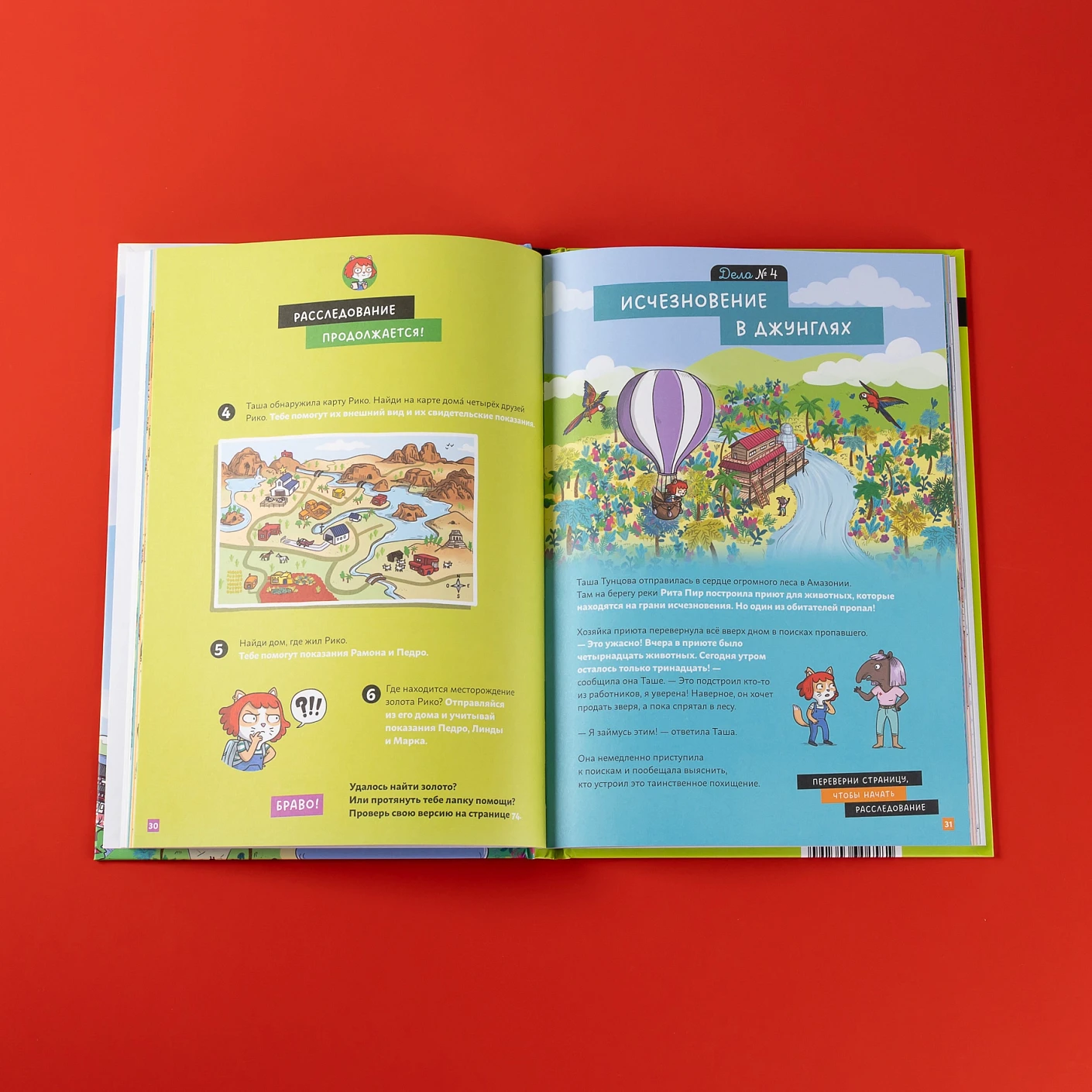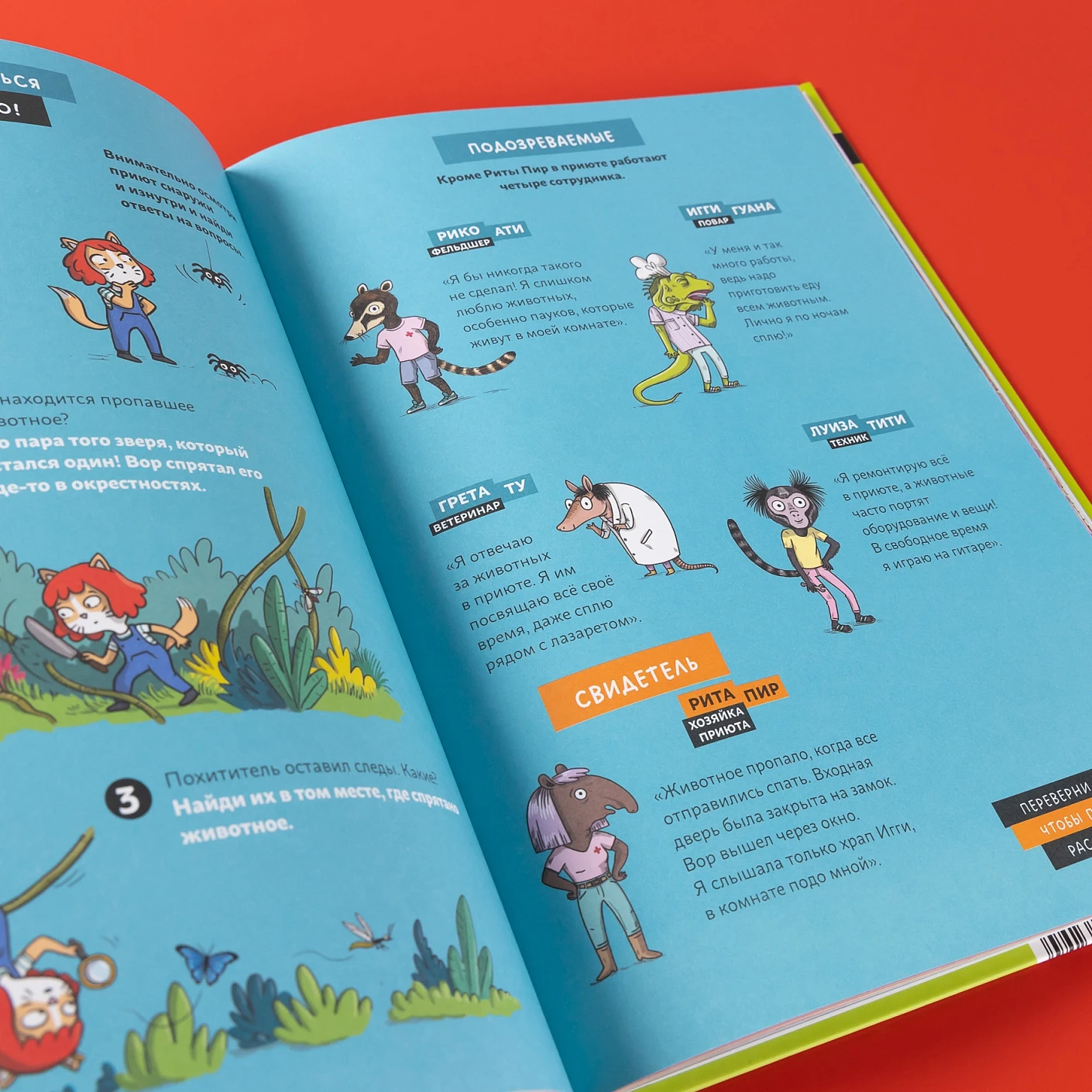 Маленьких детективов ждут 8 историй с заданиями, которые направлены на развитие внимания и умения строить логические цепочки. Сложность заданий растет с каждой историей, поэтому книга подойдет детям разных возрастов. Рассматривайте картинки и ищите на них улики с ребятами 3-4 лет. Разбирайтесь в первых детективных историях с детьми 5-6 лет. Распутывайте хитросплетения улик и показаний свидетелей вместе с ребятами 6-7 лет.