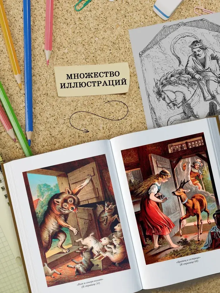 Экспрессивная графика немецких и английских художников позволяет проникнуться атмосферой приключений и неизбежной победы добра над злом. Художник Филипп Грот-Иоганн назвал свои иллюстрации к подарочному изданию сказок главным делом всей жизни. Изящные цветные иллюстрации Карла Оффтердингера и Александра Зика передают дух времени и самих сказок, чарующих и порой суровых.