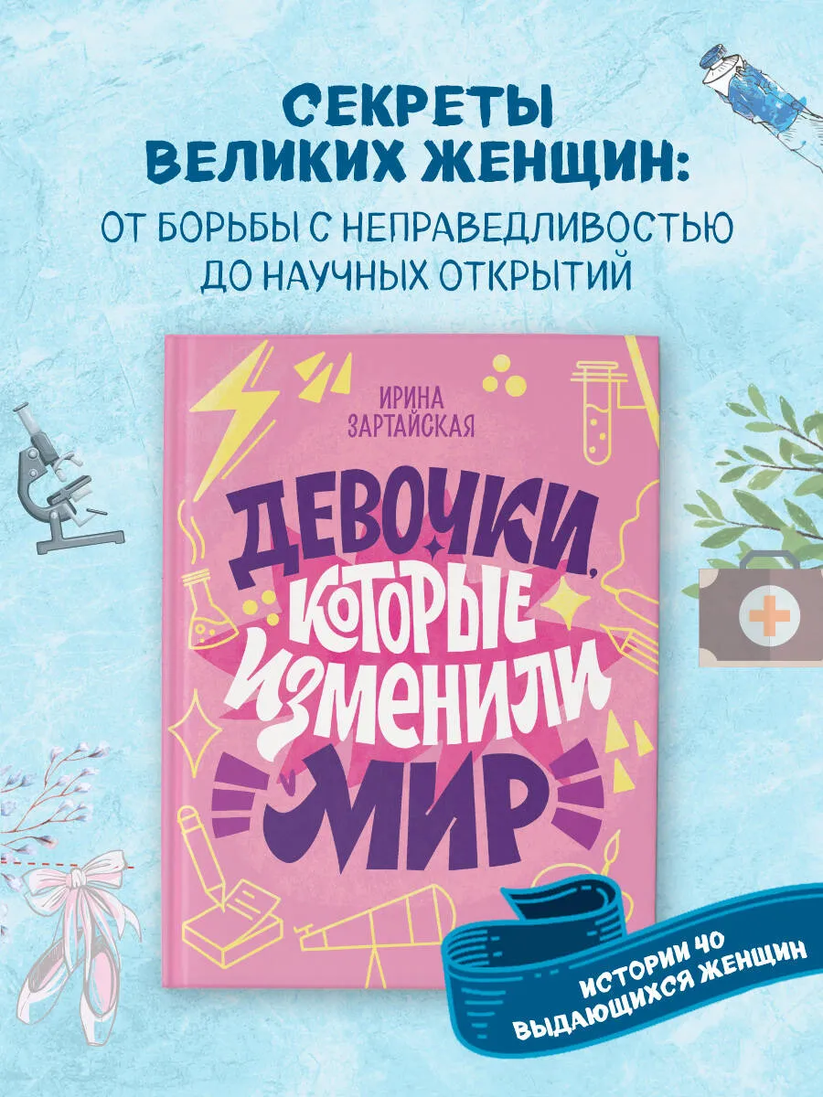 Эта вдохновляющая книга Ирины Зартайской знакомит читателей с историями выдающихся женщин, чьи достижения перевернули представления о возможностях "слабого пола" и изменили ход истории.От древних времён до наших дней героини книги — учёные, политики, художницы, писательницы — доказывали, что упорство, талант и вера в себя способны преодолеть любые преграды.В книге представлены:- Гипатия — античный философ и математик, ставшая символом борьбы за знания в эпоху, когда наука была привилегией мужчин;- Екатерина II Великая — императрица, превратившая Россию в мощную державу, несмотря на сопротивление окружения и гендерные стереотипы;- Мария Кюри — первая женщина-лауреат Нобелевской премии, открывшая радий и полоний, чьи исследования спасли миллионы жизней;- Роза Люксембург — революционерка, боровшаяся за социальную справедливость и права рабочих в условиях политических репрессий;- Фрида Кало — художница, преодолевшая физические страдания и создавшая уникальные произведения, ставшие манифестом женской силыи многие другие."Девочки, которые изманили мир" - это сборник историй, который напоминает, что даже маленькие шаги могут изменить мир.
