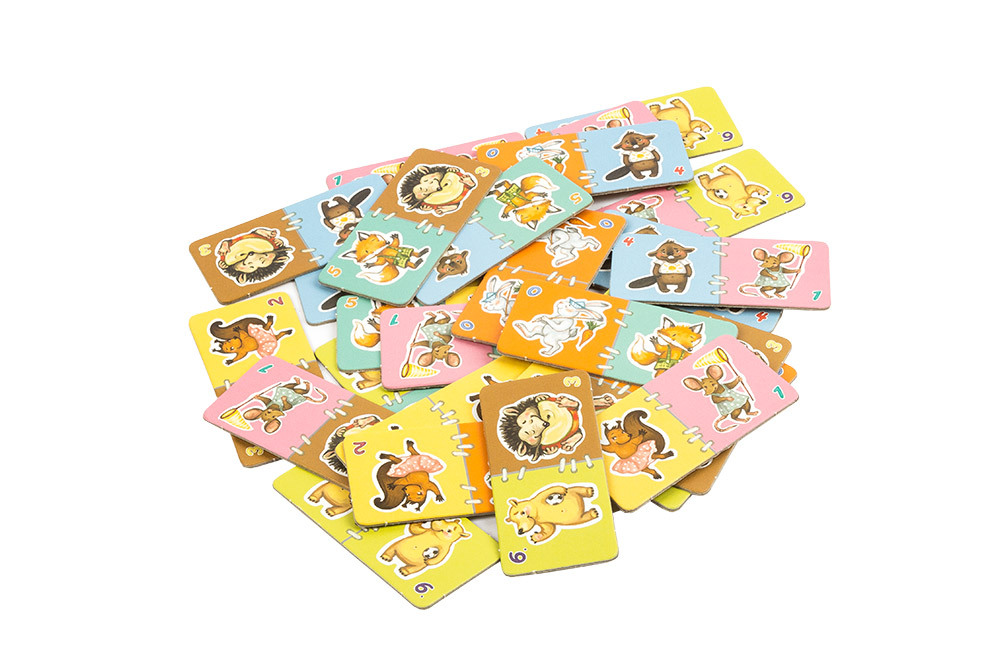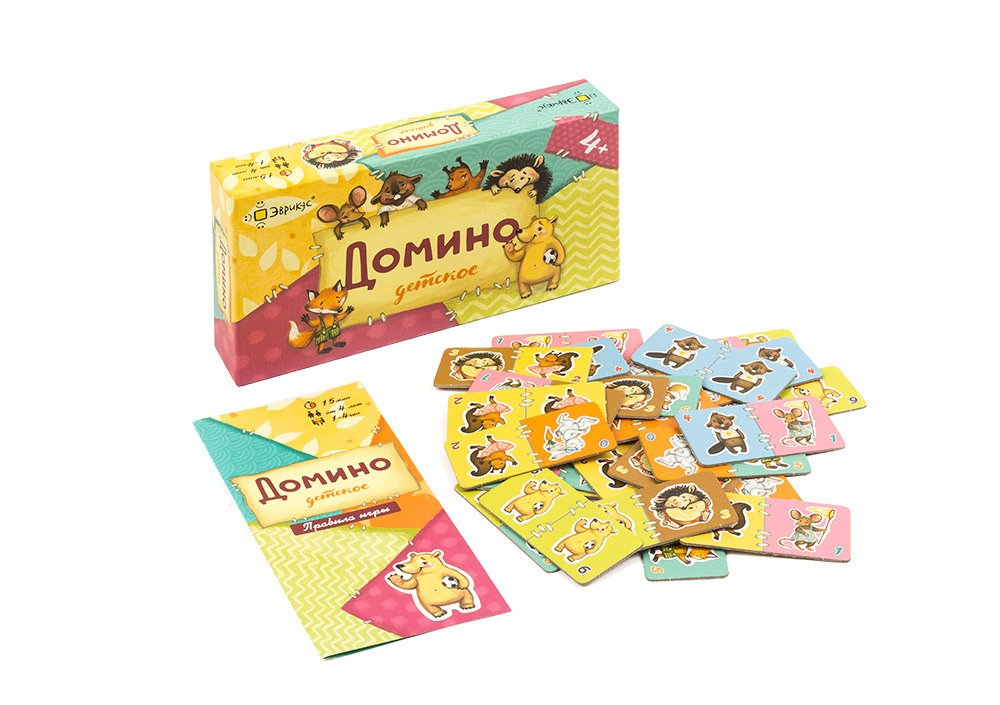 Милые и забавные лесные малыши приглашают вас сыграть в уютное детское домино. Домино детское от издательства Эврикус - красочная развивающая игра с толстыми картонными фишками. Вместо точек на фишках изображены зверята. Играть в домино можно с самого раннего возраста: найдите на карточках всех животных, назовите цифры, расположив их по порядку, вместе постройте дорожку из фишек и пройдите по ней пальчиками, и конечно, сыграйте с ребёнком в его первое домино по настоящим правилам! Кому подойдёт эта игра? Мамам и малышам. Юным поклонникам животного мира. Весёлой детской компании. Как играть? 1. Все карточки домино раскладываются на столе картинками вниз. Игроки выбирают себе по 5 карточек (если участников мало, количество фишек можно увеличить до шести-семи). 2. Первым делает ход тот, кому попался самый крупный зверь - медвежонок. 6. Далее все участники по очереди выкладывают свои фишки так, чтобы крайние изображения совпадали. Если у игрока нет подходящей карточки, он берёт её из общего банка на столе. 3. Победителем становится игрок, который первым выложил все свои фишки.