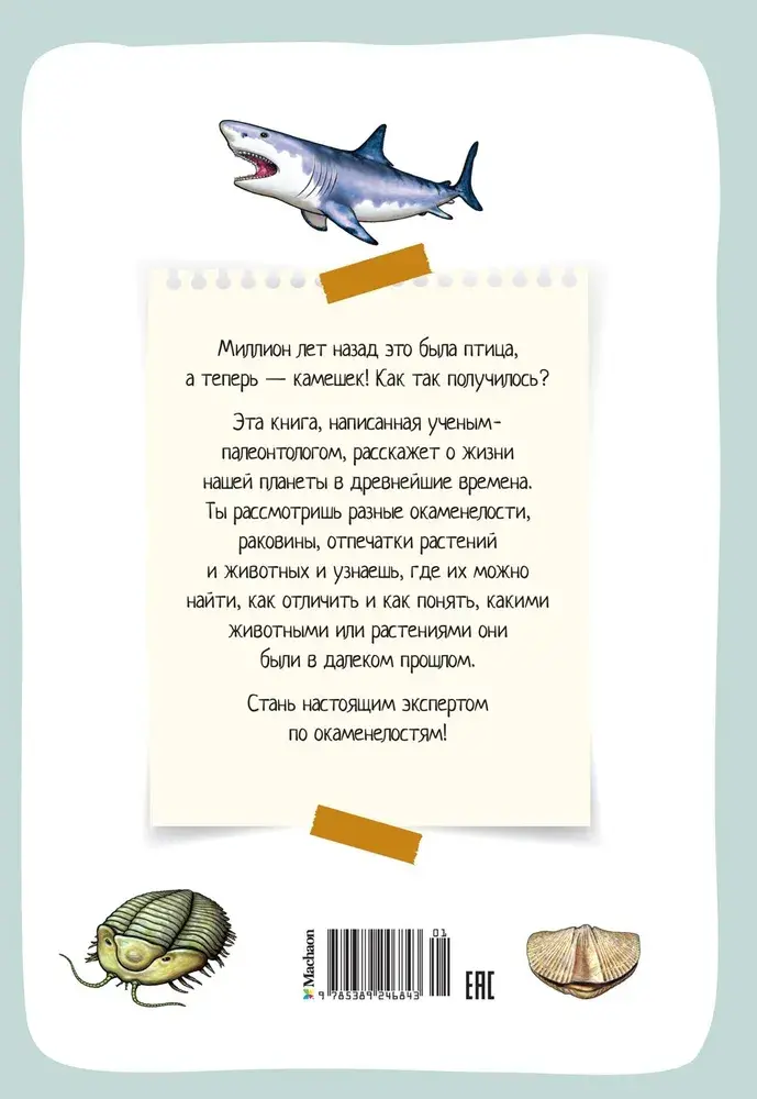 Миллион лет назад это была птица, а теперь — камешек! Как так получилось? Эта книга, написанная ученым-палеонтологом, расскажет о жизни нашей планеты в древнейшие времена. Ты рассмотришь разные окаменелости, раковины, отпечатки растений и животных и узнаешь, где их можно найти, как отличить и как понять, какими животными или растениями они были в далеком прошлом. Стань настоящим экспертом по окаменелостям!