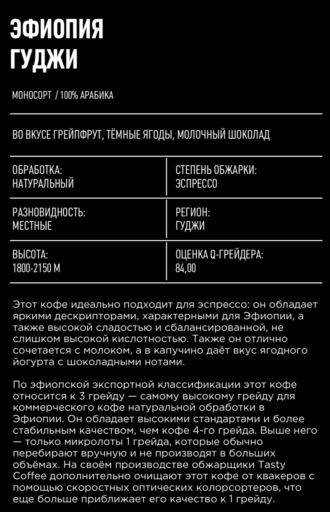 Сладкий кофе с нотами грейпфрута, тёмных ягод и молочного шоколада.