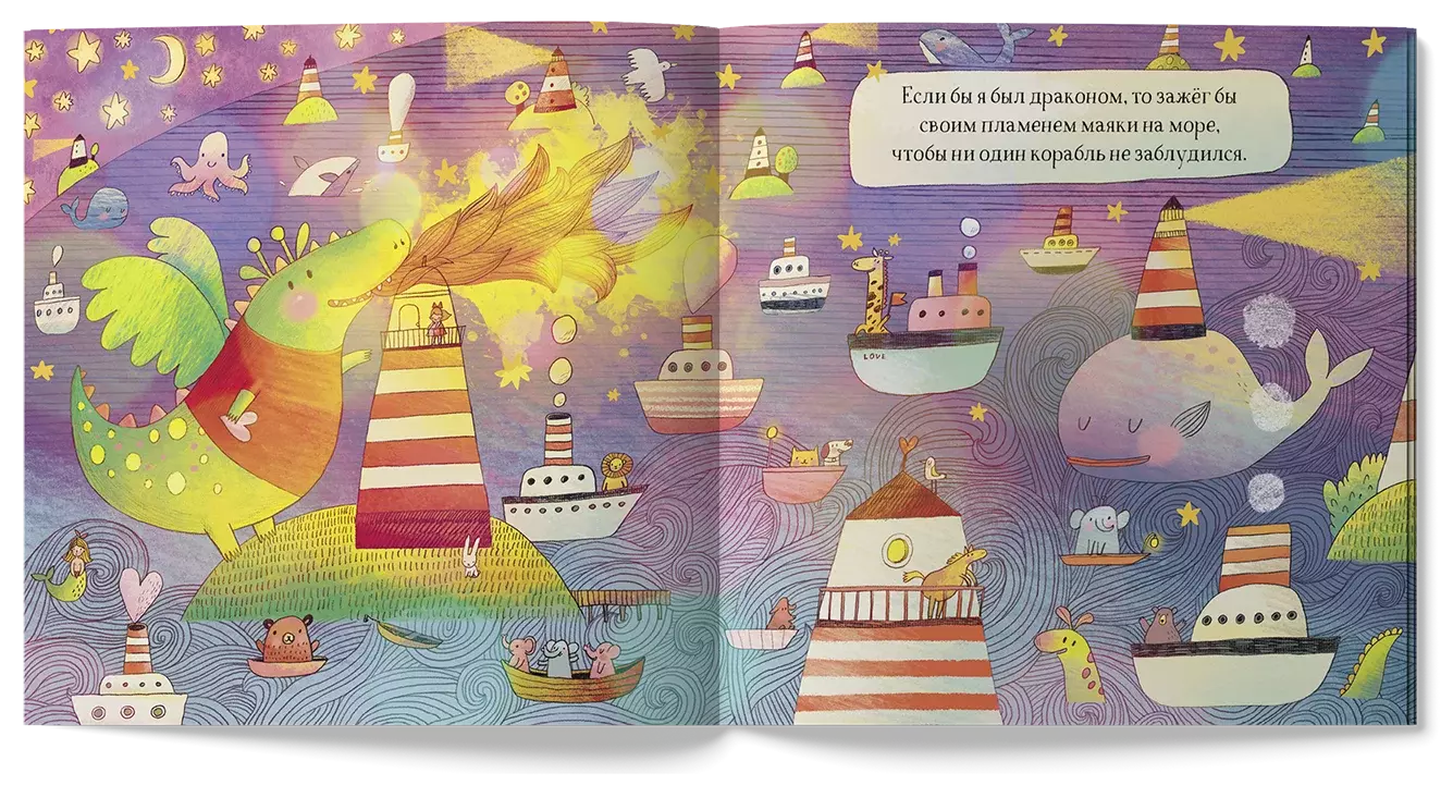 Если бы я был драконом, то зажигал бы своим пламенем маяки, чтобы ни один корабль не заблудился... Если бы я был волшебником, то подарил бы всем детям конфеты, а взрослым — счастье. А моя мама говорит, что я уже волшебник...