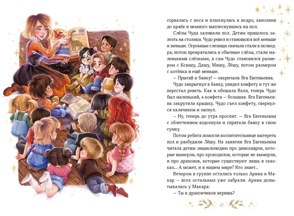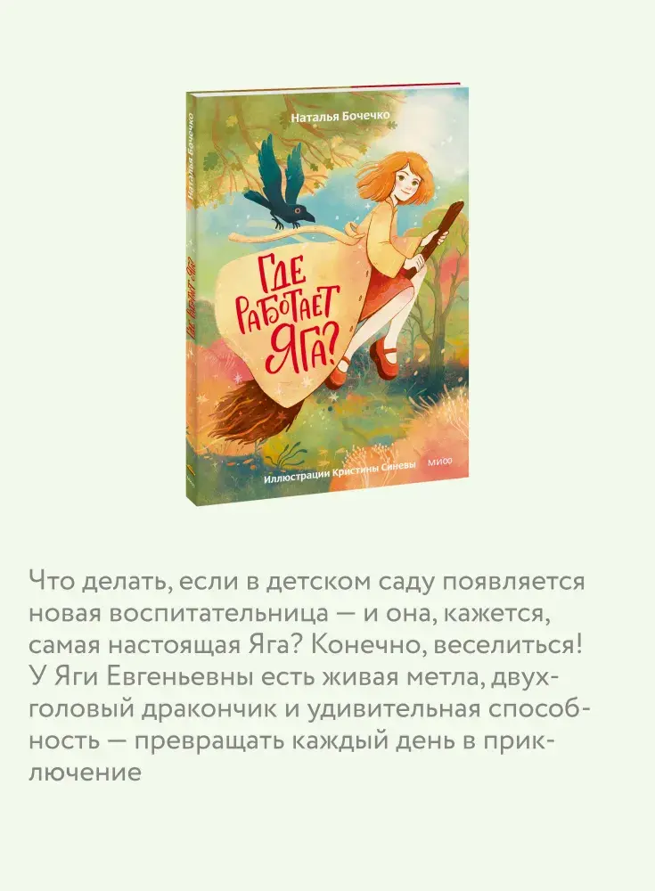 Да, Яга Евгеньевна немного строгая, зато справедливая и попросту... волшебная! У нее есть живая метла, магический экран для наблюдения за детьми и удивительные друзья — например, двухголовый дракончик Чудо. А главное — Яга Евгеньевна не только приоткроет ребятам дверь в сказочный мир, но и научит тому, как важны дружба, сострадание и взаимовыручка.
