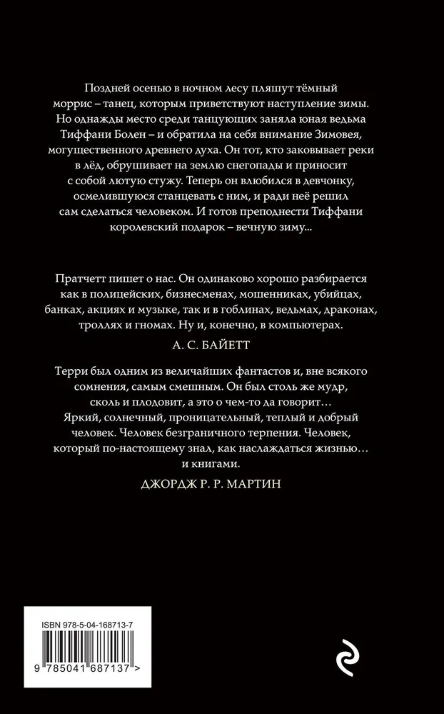Поздней осенью в ночном лесу пляшут тёмный моррис: танец, которым приветствуют наступление зимы. Но однажды место среди танцующих заняла юная ведьма Тиффани Болен — и обратила на себя внимание Зимовея, могущественного древнего духа. Он тот, кто заковывает реки в лёд, обрушивает на землю снегопады и приносит с собой лютую стужу. Теперь он влюбился в девчонку, осмелившуюся станцевать с ним, и ради неё решил сам сделаться человеком. И готов преподнести Тиффани королевский подарок: вечную зиму...