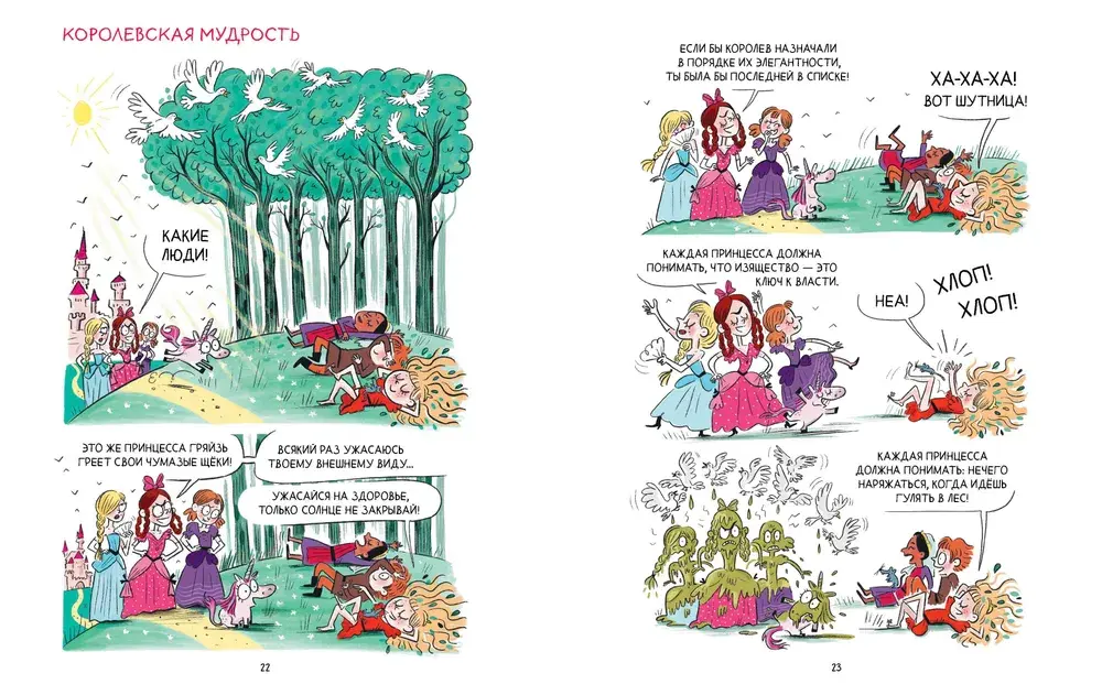 Неугомонная принцесса терпеть не может правила. Она является в кедах на церемонию, ведь так удобнее танцевать. Взламывает зеркальце кузины, чтобы пошутить о том, кто на свете всех милее. Поддерживает бунт гномов в шахте. Каждый день — новые проказы!