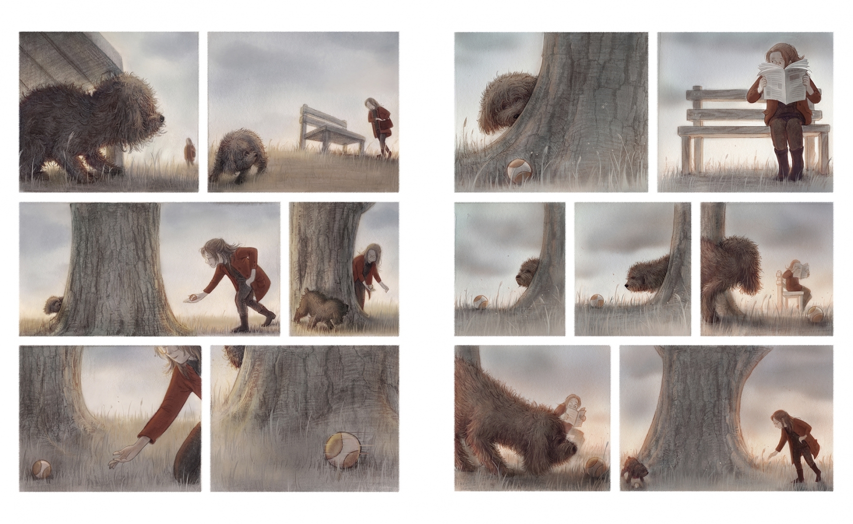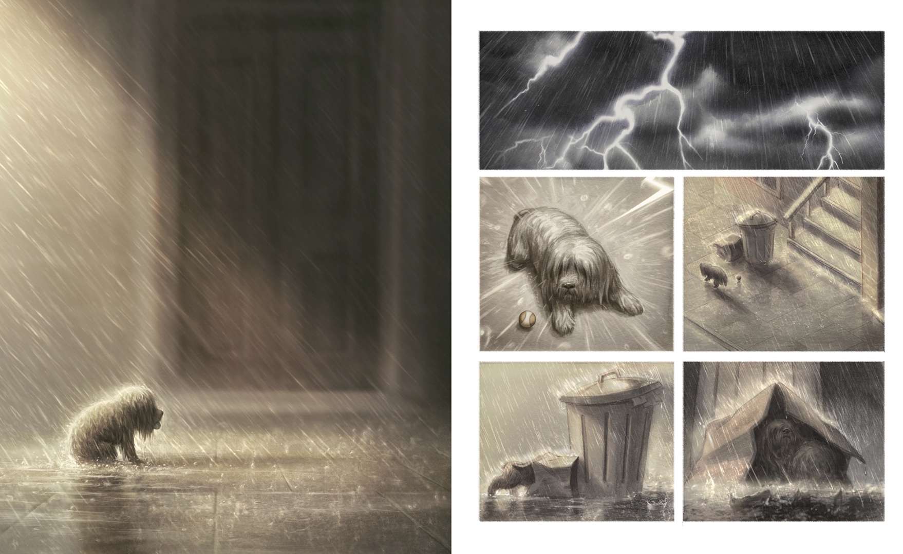 Скамейка под огромным деревом – единственное убежище для маленькой кудрявой собачки. Однажды в парк приходит девушка. Она замечает собаку и день за днем пытается с ней подружиться. И когда собака находит в себе смелость отправиться вслед за девушкой в город, начинается страшная гроза… Это графическая история без слов рассказана с помощью удивительных полных динамики иллюстраций. Она о том, как иногда непросто довериться, не испугаться стихии, найти настоящего друга, обрести дом и имя.