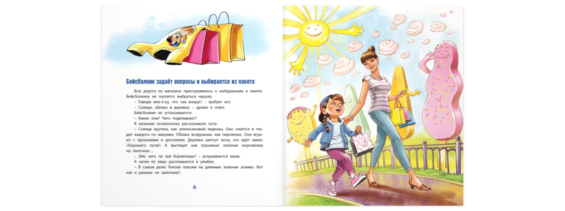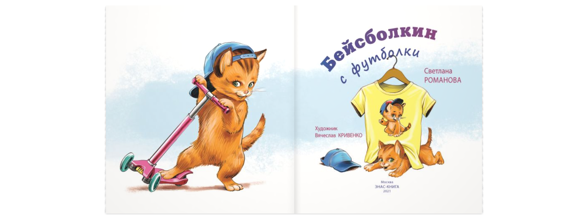 Была у девочки Эли футболка. Да не простая, а особенная. А всё потому, что жил на этой футболке... кот в бейсболке! И звали того кота – Бейсболкин. Замечательный был кот! Он и мысли читать умел, и на самокате был рад прокатиться. Даже колыбельные Эле напевал. Всё они с Элей делали вместе. Не верите? Тогда открывайте скорее эту удивительную книгу и убедитесь сами!