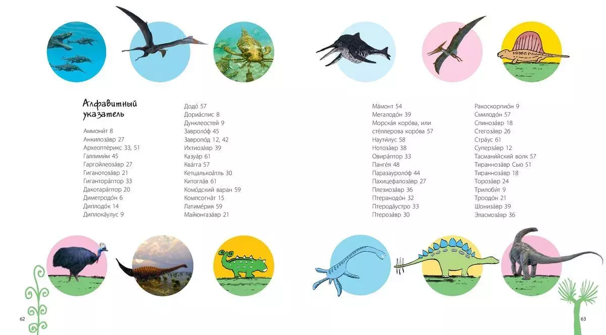 Наука помогает людям разгадывать тайны времени. Поэтому ученым сегодня многое известно об удивительных существах, которые миллионы лет назад плавали в воде, парили в небесах, бродили по земле. Книга рассказывает о динозаврах – древних ящерах, которые вымерли давным-давно, а когда-то были хозяевами планеты, и о других необыкновенных созданиях, населявших Землю в невообразимо далекие времена. Она написана простым, понятным языком и иллюстрирована сочетанием высококачественных художественных фотографий с забавными авторскими рисунками.