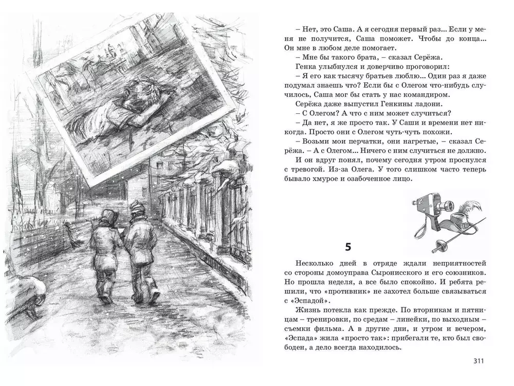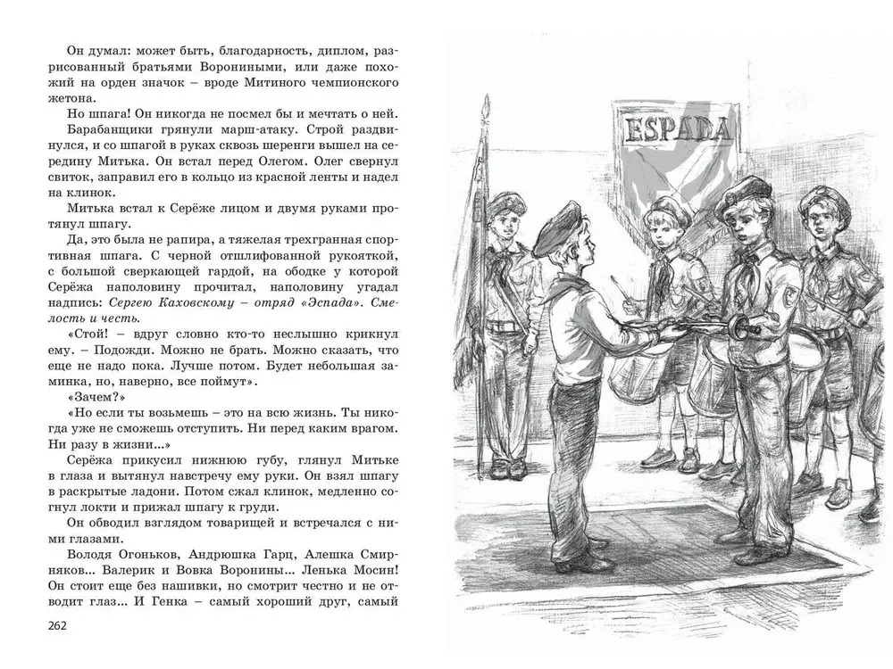 «Мальчик со шпагой» – повесть, вошедшая в золотой фонд детской литературы, эталон детской книги на все времена. Серёжа Каховский и его друзья из дворового клуба «Эспада» не желают мириться с несправедливостью и с жестокостью, где бы она ни проявлялась. Мальчишки из «Эспады» всегда готовы обнажить свои шпаги в защиту человека. Их идеал – горячее сердце, непоколебимое мужество, правда во всем, какой бы суровой она ни была. Читайте всей семьей!