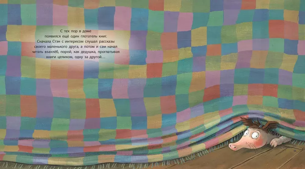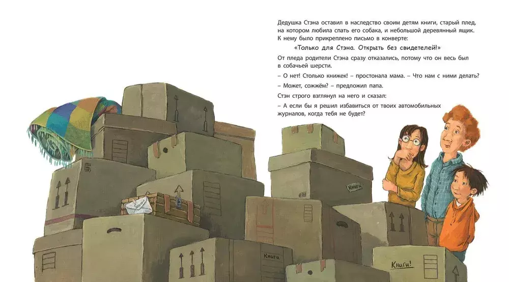 Дедушка оставляет на память внуку свою библиотеку и таинственный ящик с надписью «Только для Стэна». Что в нём спрятано? Может быть, пиратская карта или золотые монеты? Нет, в ящике оказалось удивительное существо!.. Добрая история замечательной сказочницы Корнелии Функе – о целом мире, спрятанном под книжными обложками…