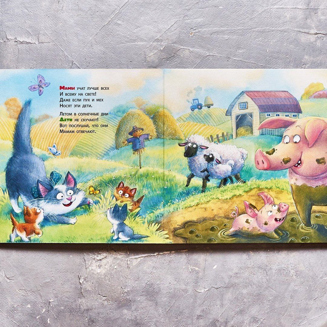 Все мамы очень любят своих малышей. А еще они учат их всему на свете! Как же они это делают? Что они говорят своим любимым деткам? И что отвечают детки своим мамам? Забавные и нежные стихи Сергея Еремеева поведают маленьким читателям, как разговаривают разные животные. А веселые, озорные рисунки Любови Ерёминой-Ношин покажут, как проходят такие уроки!