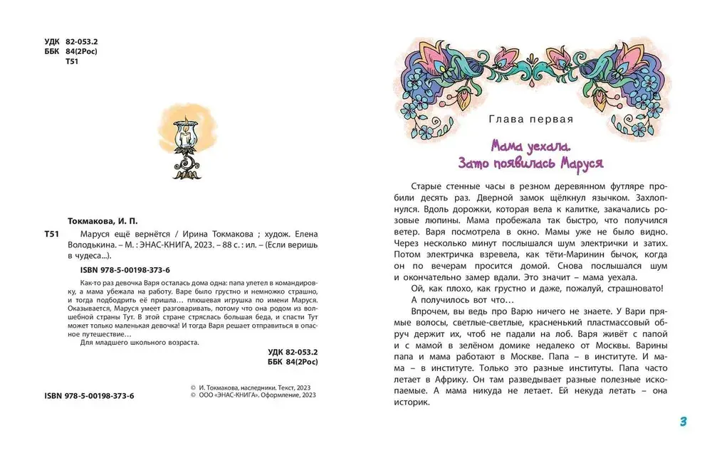 Как-то раз девочка Варя осталась дома одна: папа улетел в командировку, а мама убежала на работу. Варе было грустно и немножко страшно. Но неожиданно подбодрить её пришла… плюшевая игрушка, медведица по имени Маруся. Оказывается, Маруся умеет разговаривать, потому что она родом из волшебной страны Тут. В этой стране стряслась большая беда, и спасти ее может только маленькая девочка! И тогда Варя решает вместе с Марусей отправиться в опасное путешествие…