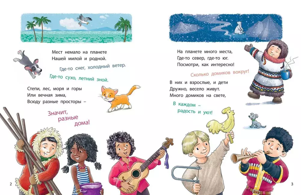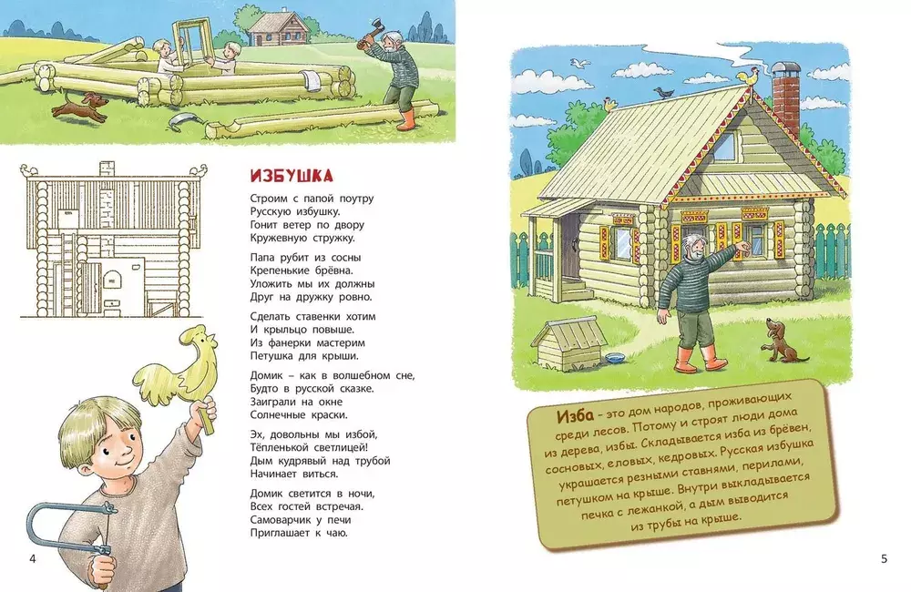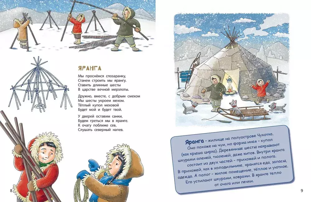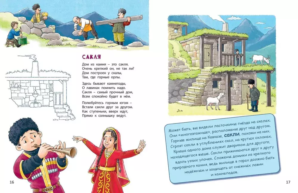 В степях, лесах, горах – всюду живут люди! Вот только дома в разных уголках мира выглядят по-разному. Где-то жилища возводят из снега, где-то строят из дерева, где-то из камня… Какие-то домики умеют плавать по морю, а другие тают летом. И называются они по-разному: изба, чум, вигвам… Обо всех этих и многих других строениях малышам расскажет Наталья Иванова, а покажет, как они выглядят, – художник Владимир Юденков. Познавательная книжка в стихах с краткими полезными сведениями о строительстве разнообразных домов и забавными рисунками расширит кругозор ребенка.