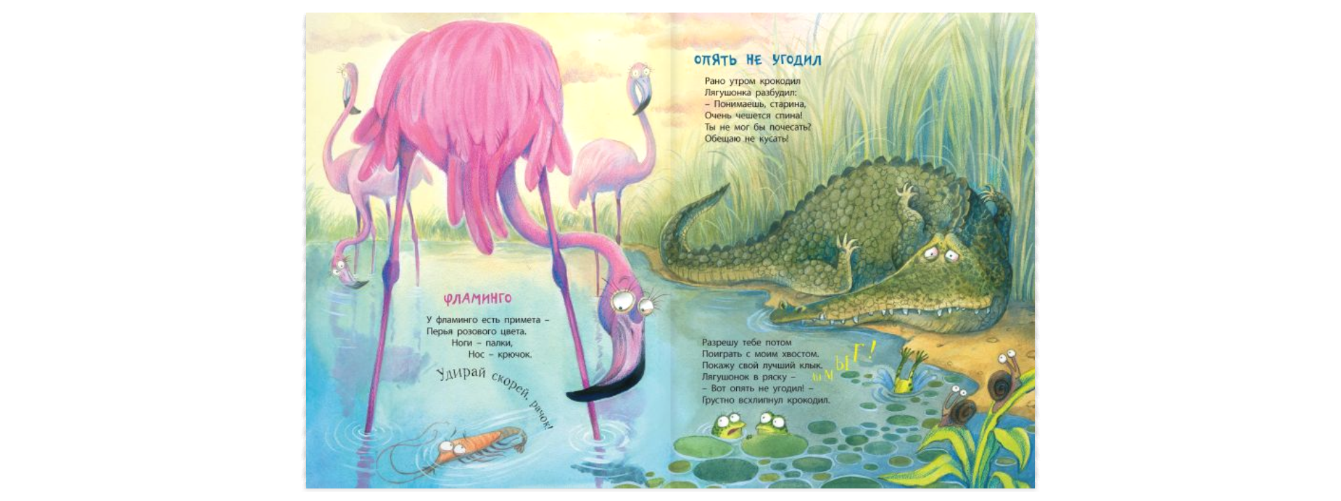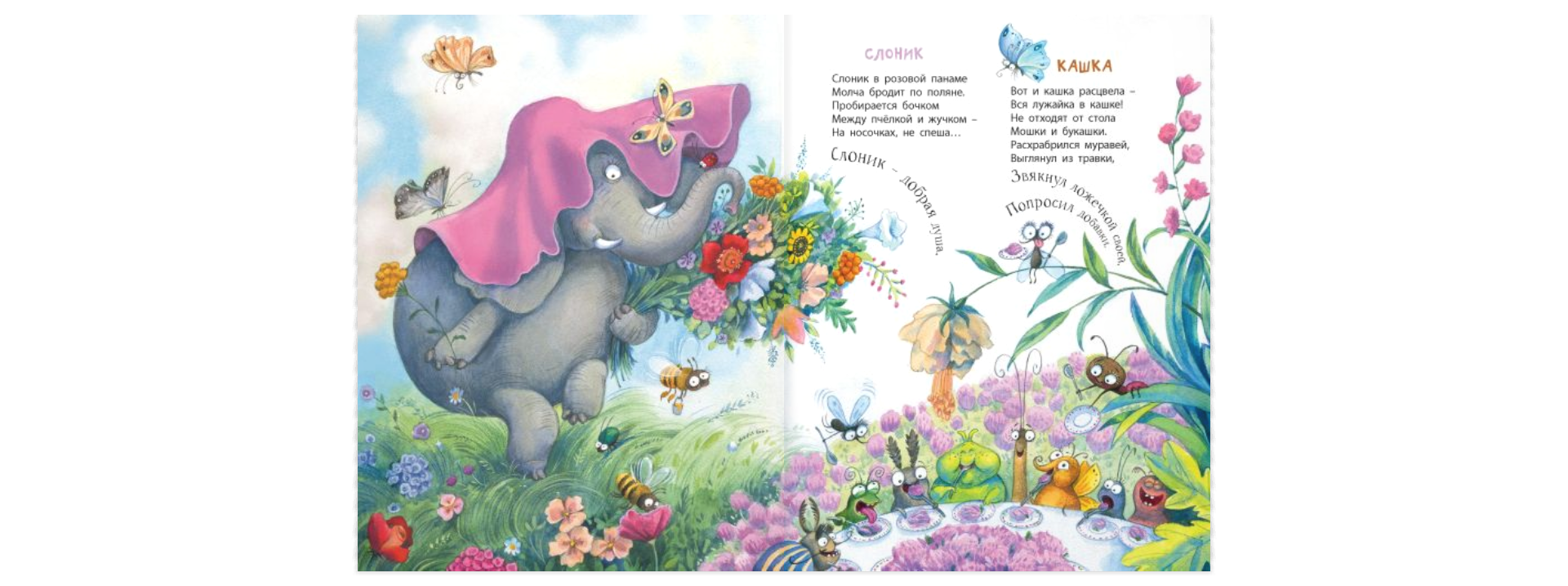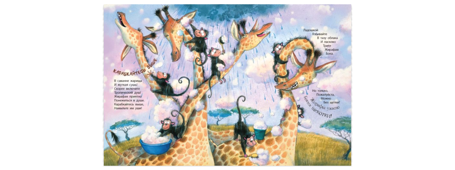 Откройте эту книжку – и вы тут же попадёте в удивительную страну. Кого тут только нет! И о себе расскажет каждый обитатель здешних мест. Здесь акула умеет печь пироги, жираф принимает тропический душ, а ещё в ней живёт самый добрый на свете слон!