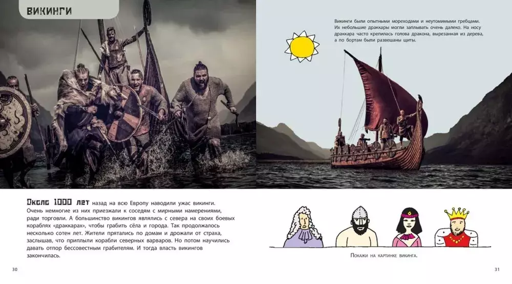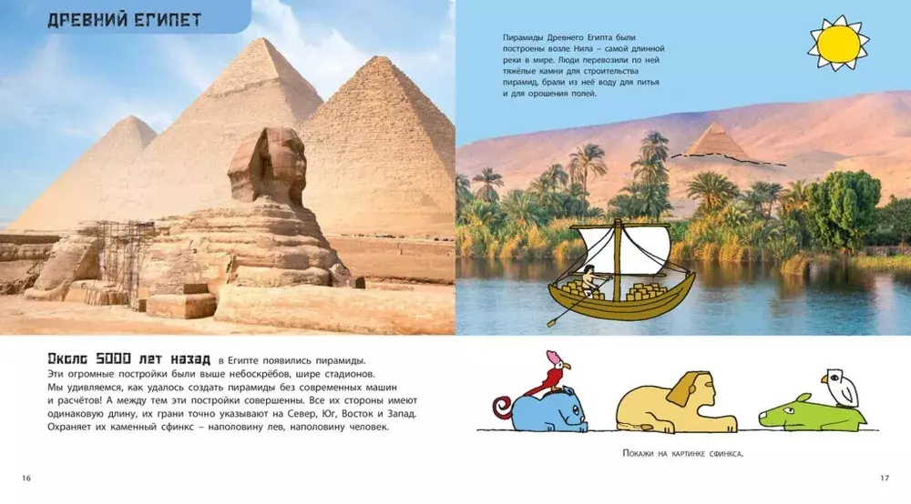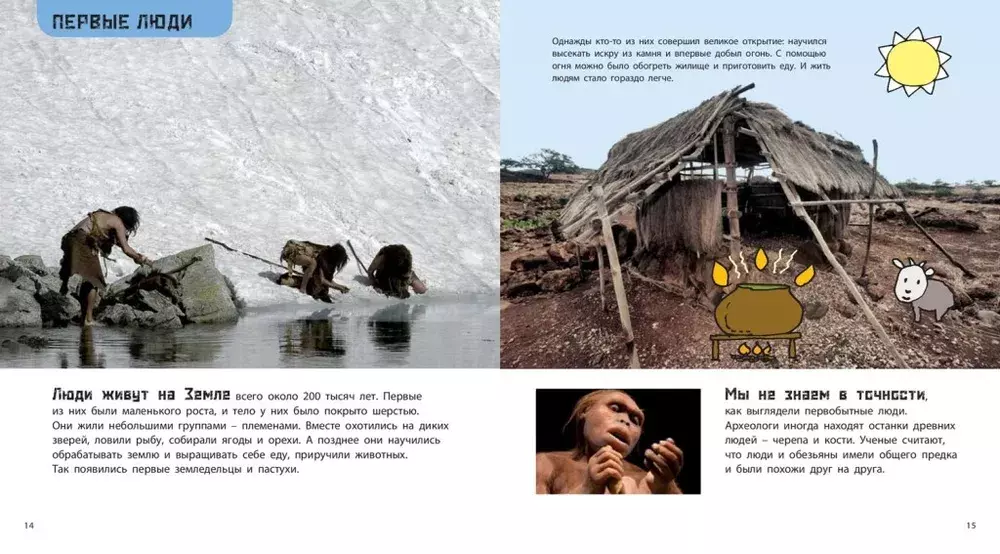 Эта книга с великолепными фотографиями и веселыми авторскими рисунками представляет собой краткий экскурс в историю человеческой цивилизации. Маленький читатель узнает, что появлению человека на Земле предшествовали миллионы лет, в течение которых на безжизненной планете появились первые живые существа, которые впоследствии развились в самые разные формы. А всего за 200 тысяч лет человечество прошло огромный путь от первобытного состояния до появления первых космических кораблей! Каждая веха развития человечества – от первобытных людей до первых земледельцев, от Средневековья до эпохи географических открытий, от первых автомобилей до современных компьютеров – представлена кратко и наглядно, а забавные вопросы к читателю на каждом развороте позволят ребенку лучше запомнить материал.