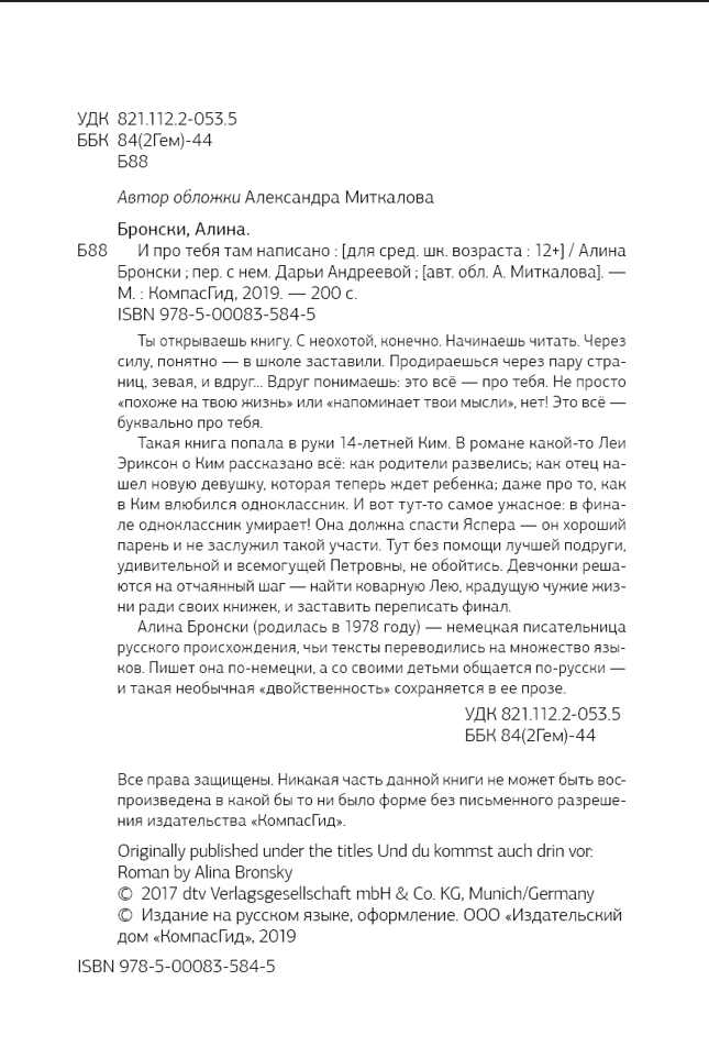 Ученица старших классов, 14-летняя Ким однажды попадает на встречу с писательницей Леей Эриксон, пролистывает её книгу — и с первых страниц понимает, что каким-то магическим образом эта книга рассказывает её, Ким, жизнь. У герои этого романа так же разводятся родители, отец так же начинает жить с молодой женщиной, которая так же вскоре беременеет от него… Но это всё мелочи по сравнению с той судьбой, которую Эриксон заготовила для первой любви своей героини: в финале этот парнишка умирает! А вдруг эта Эриксон что-то знает о жизни Ким и, о ужас, Яспера?