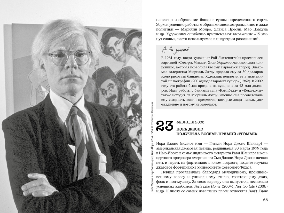 Автор 25-ти книг по искусству Александр Урго и его соавтор Лор Казеля рассказали 365 увлекательных историй об изобразительном искусстве, архитектуре, музыке, танце и театре. Представив их не в хронологической, а в календарной последовательности, они показали, что творческий дух действует всегда и везде, во все времена и у всех народов. Впечатляющий по объему и разнообразию калейдоскоп историй об искусстве — от наскальных росписей до уличных граффити и от египетских сфинксов до парижских аудио-инсталляций — заставит вас удивляться, грустить, даже негодовать и, конечно, восхищаться.