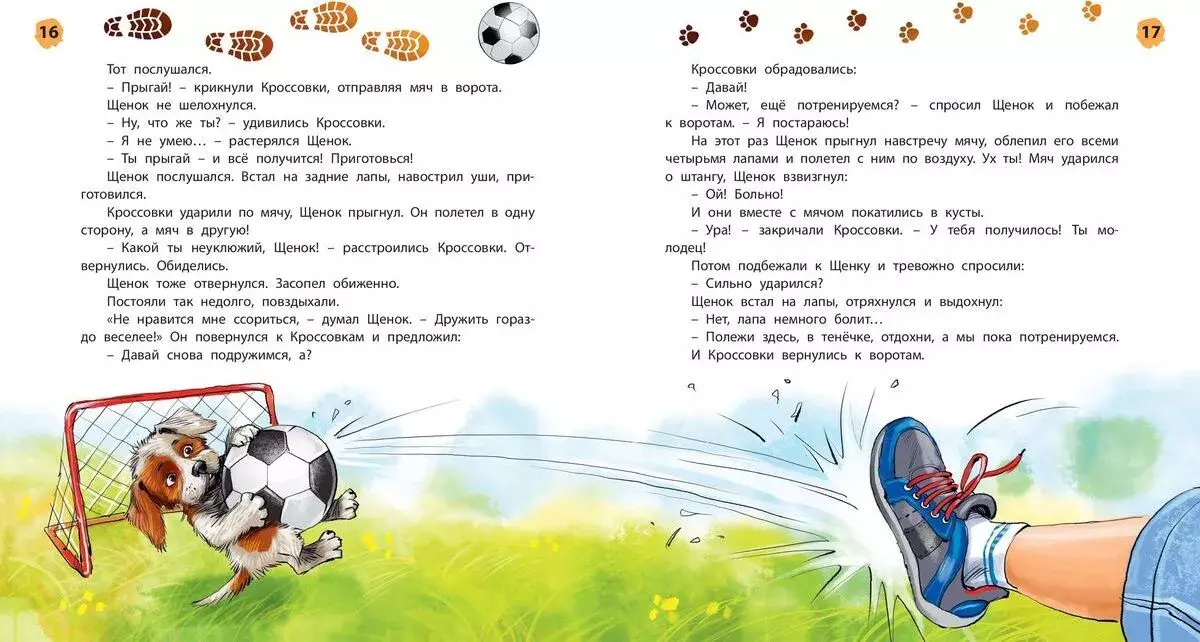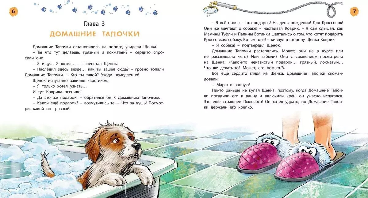 Щенок был ничей… Грустный, бродил он по улицам и переулкам большого города. Малыш искал себе друзей. Но никто не обращал на него внимания, пока одна случайная встреча не изменила его жизнь. Щенок познакомился с Домашними тапочками, с Туфлями, Ботинками, Резиновыми сапогами… Лучшими друзьями малыша стали Кроссовки. После множества приключений он нашел семью и получил звучное и гордое имя!
