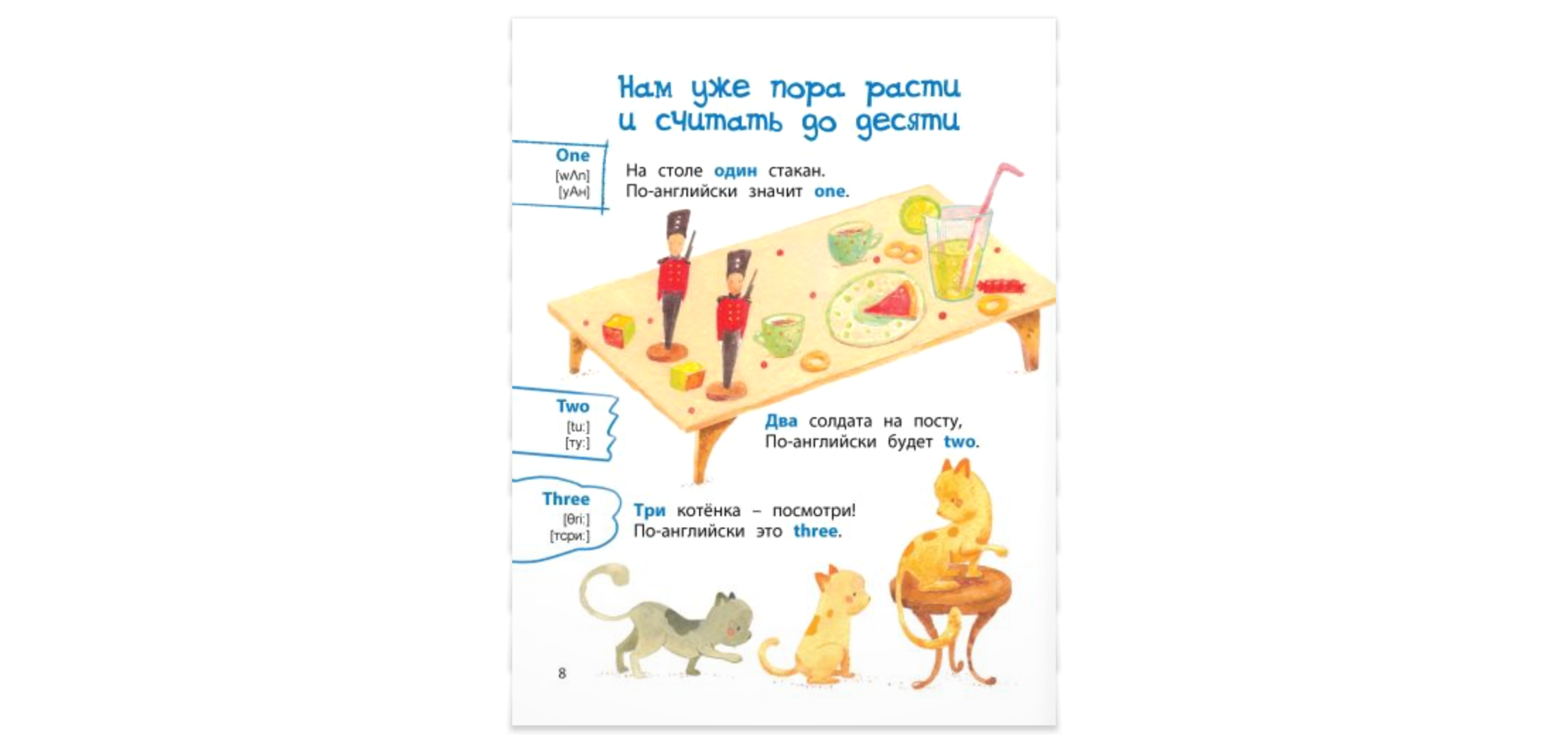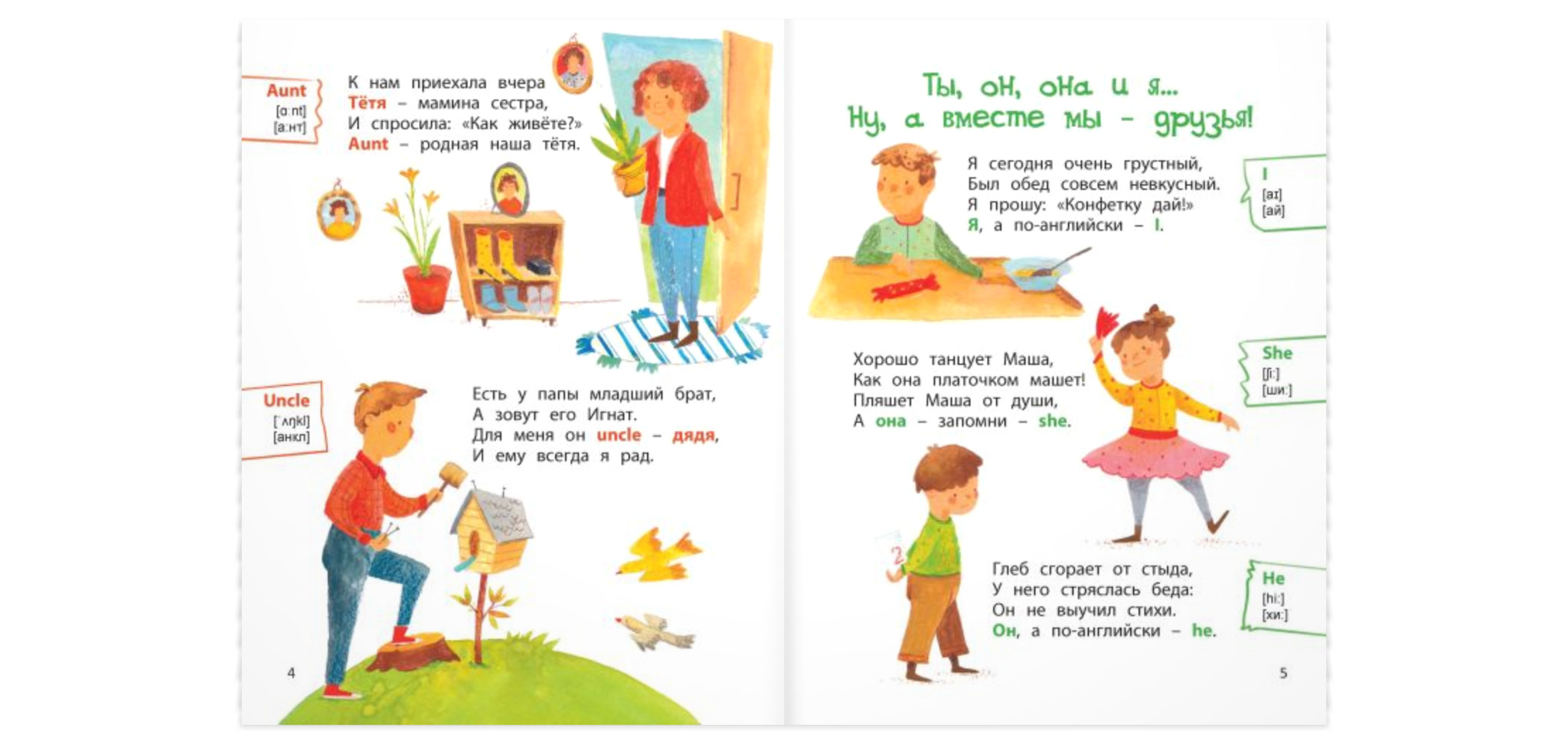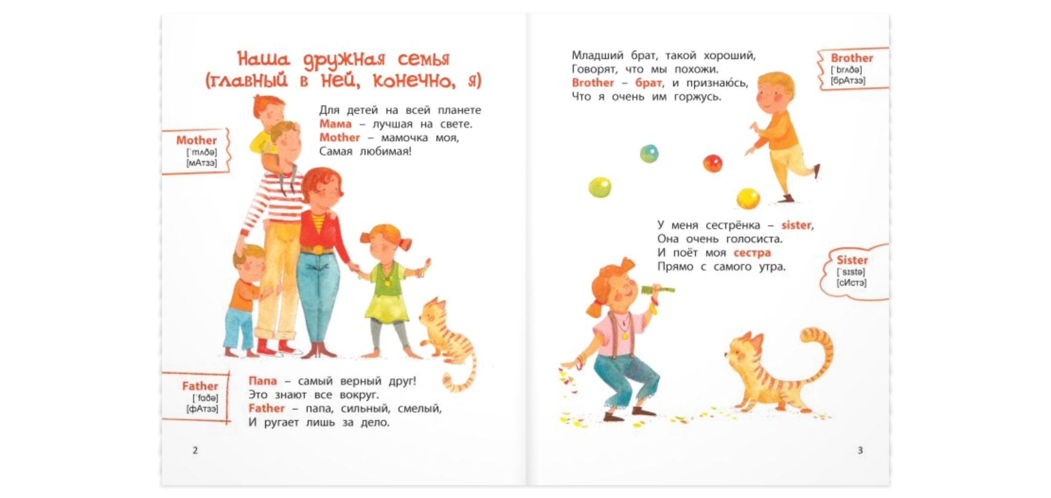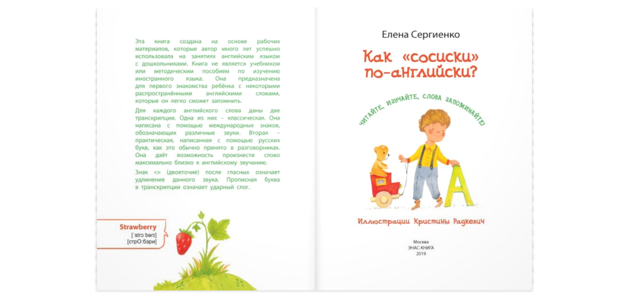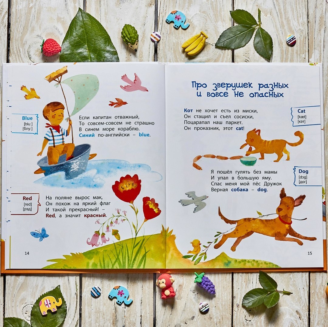 Книга поможет вам легко и в игровой форме познакомить малыша с первыми английскими словами. Под её обложкой – всё, что так любят дети: весёлые стихи и яркие картинки. В помощь родителям для каждого английского слова даны две транскрипции – классическая (написана с помощью международных знаков) и практическая (написанная с помощью русских букв, как это принято в разговорниках).