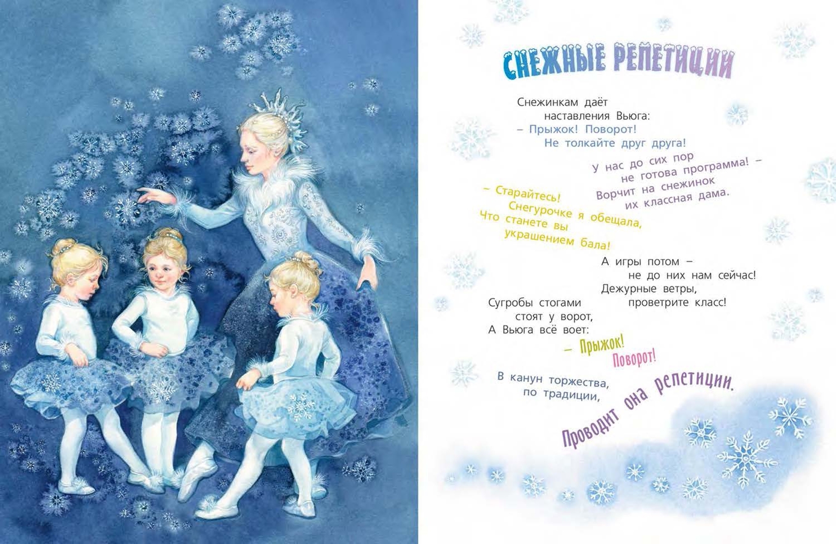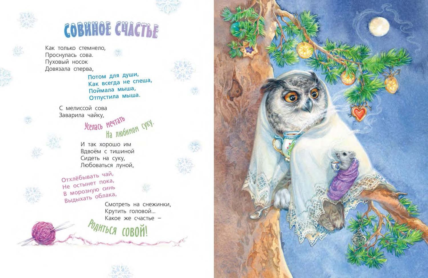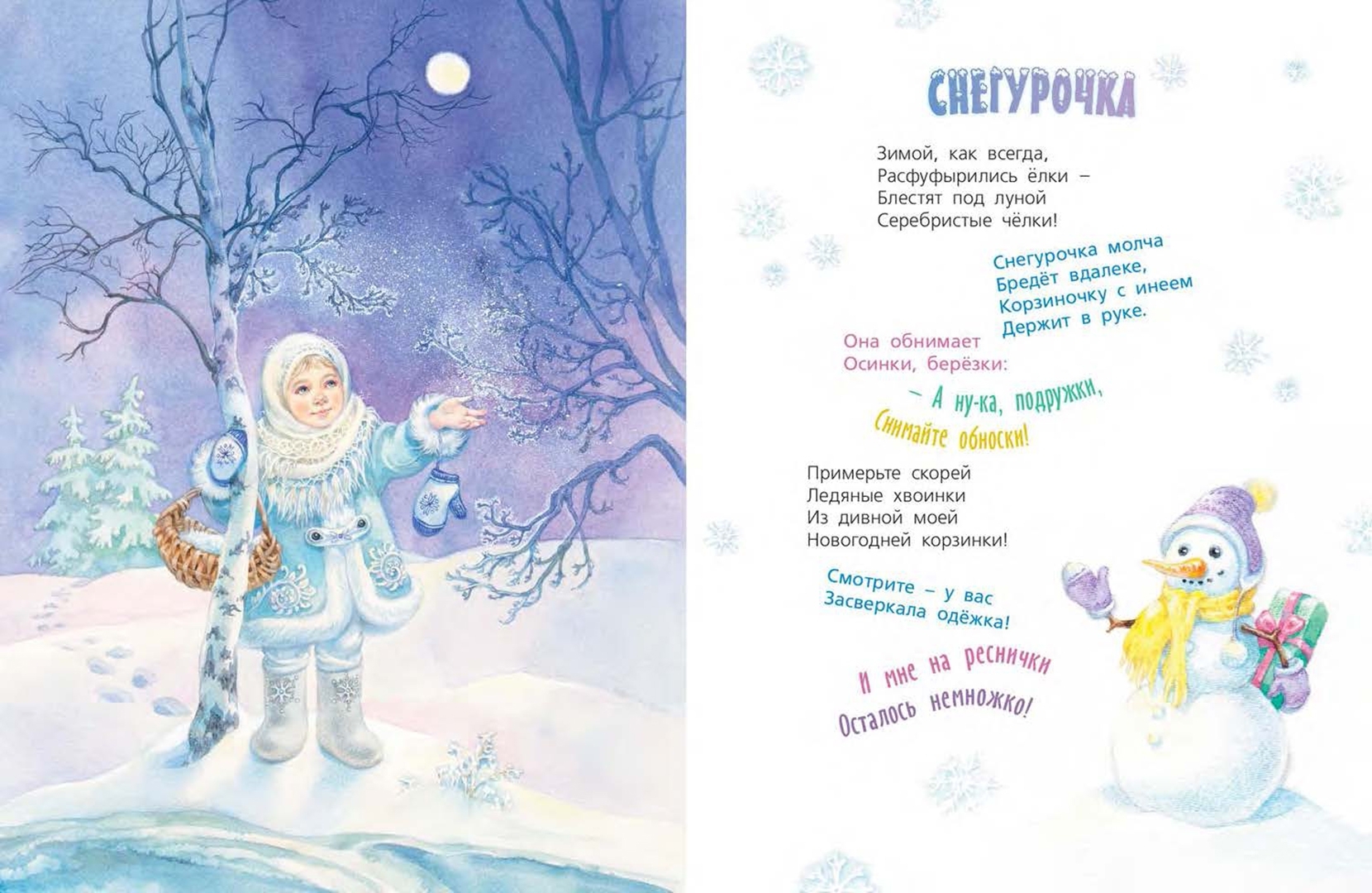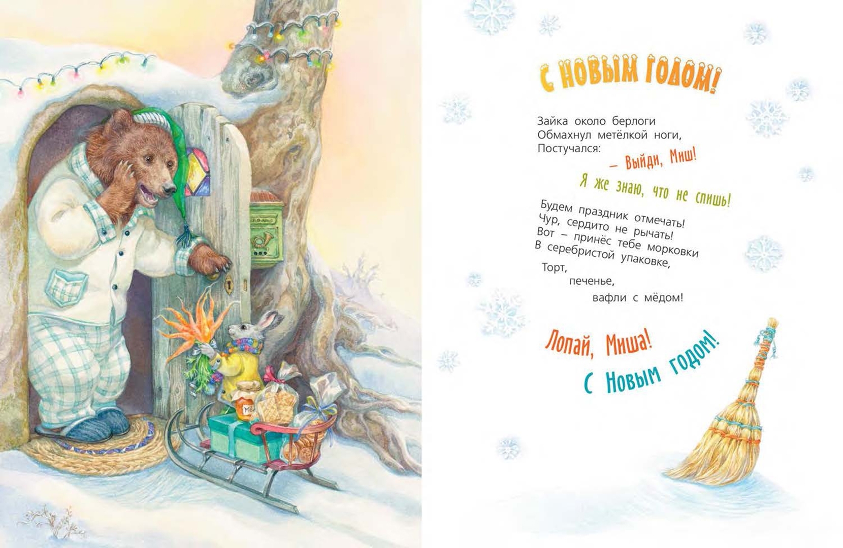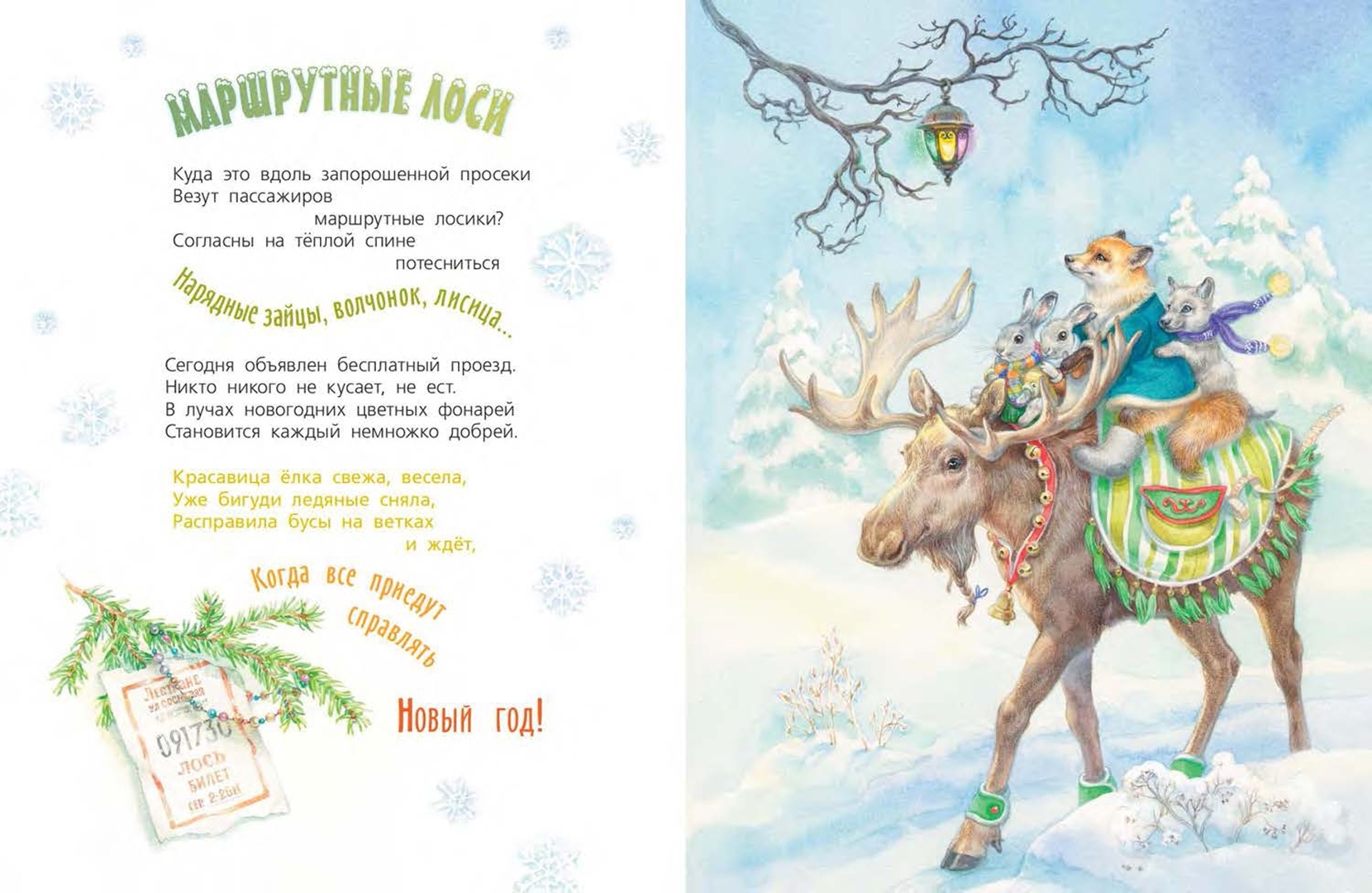 Пушистый белый снег тихо падает на высокие дубы и молодые берёзки он укутывает каждую норку в лесу каждую кочку Снежинки сверкают и переливаются множеством волшебных искорок и огоньков Кажется что заснеженный лес спит но на самом деле здесь происходят настоящие чудеса Тут елочка превращается в Снегурочку лоси как маршрутные такси везут гостей на праздник вьюга репетирует со снежинками бальные танцы а Лесовик лучший ученик в дедморозовском лицее Тайны новогоднего леса нам откроют чудесные стихи Натальи Карповой и волшебные иллюстрации Екатерины Бородачевой