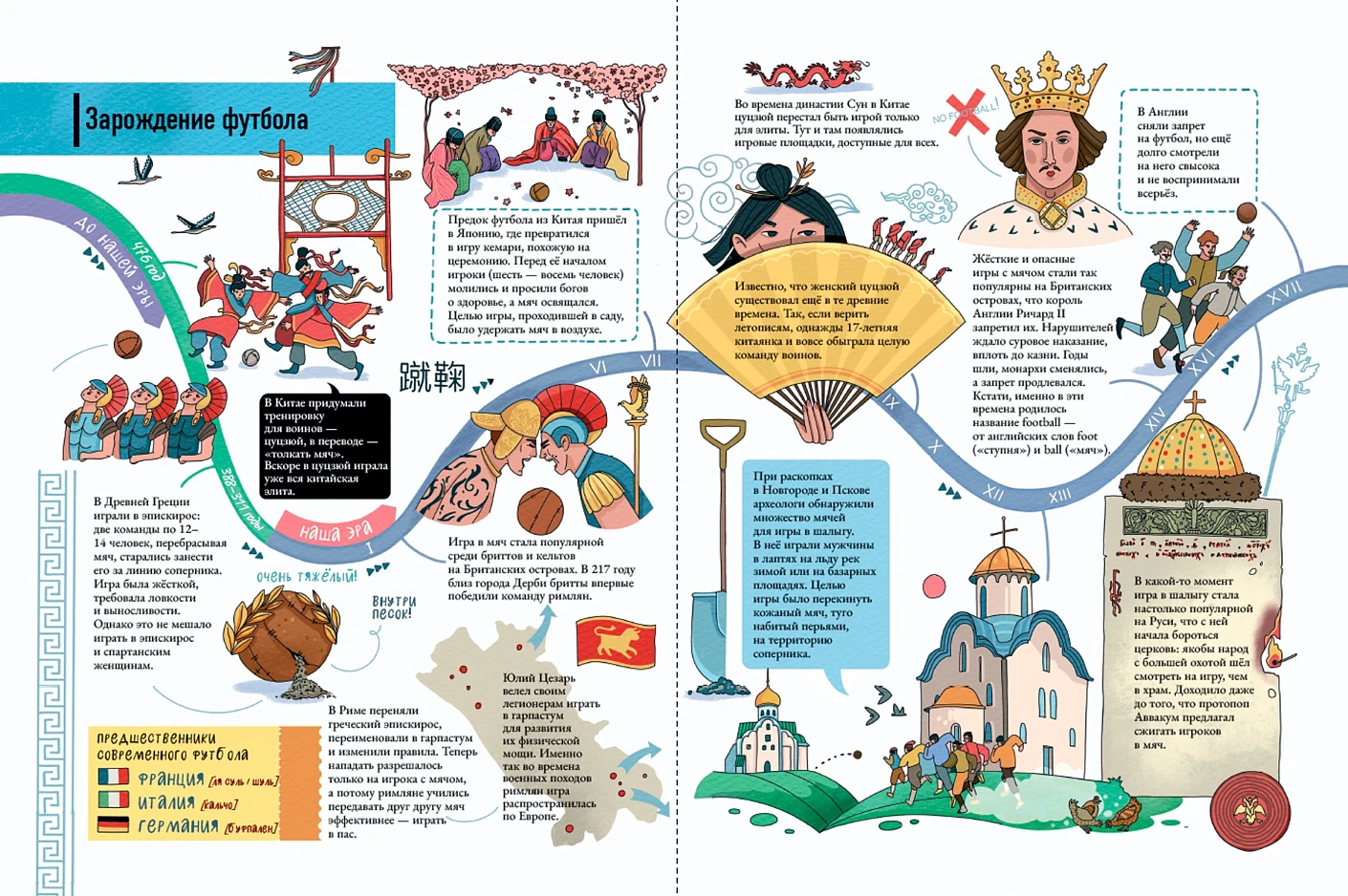 Ты познакомишься с легендарными футболистами и футболистками, невероятными рекордами и достижениями, которые сделали футбол самой известной игрой на планете.