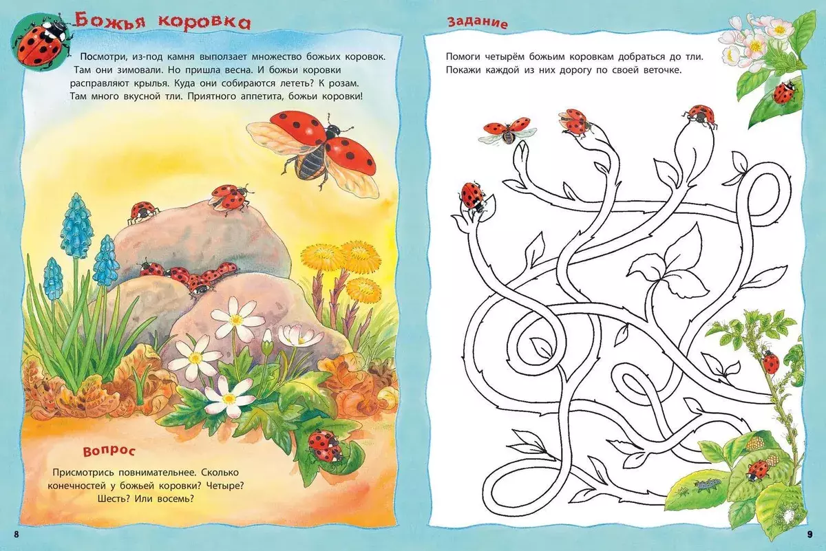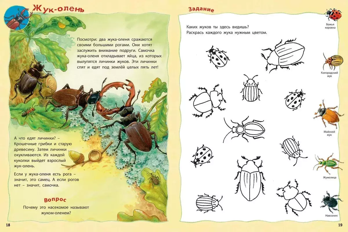 В этой увлекательной познавательной книжке с наклейками собраны головоломки и задания на внимательность, а также раскраски и вопросы о насекомых, которые живут вокруг нас.