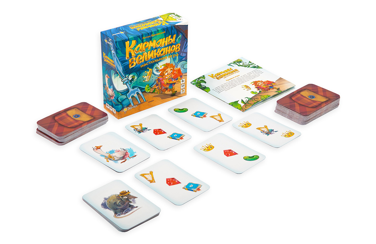 «Карманы великанов» — это быстрая карточная игра на быстрый счёт и реакцию. Помогите великанам сосчитать предметы в их карманах. Но будьте внимательны, ведь за вами наблюдают хитрый Мистер Крыс и шумная Гусыня!