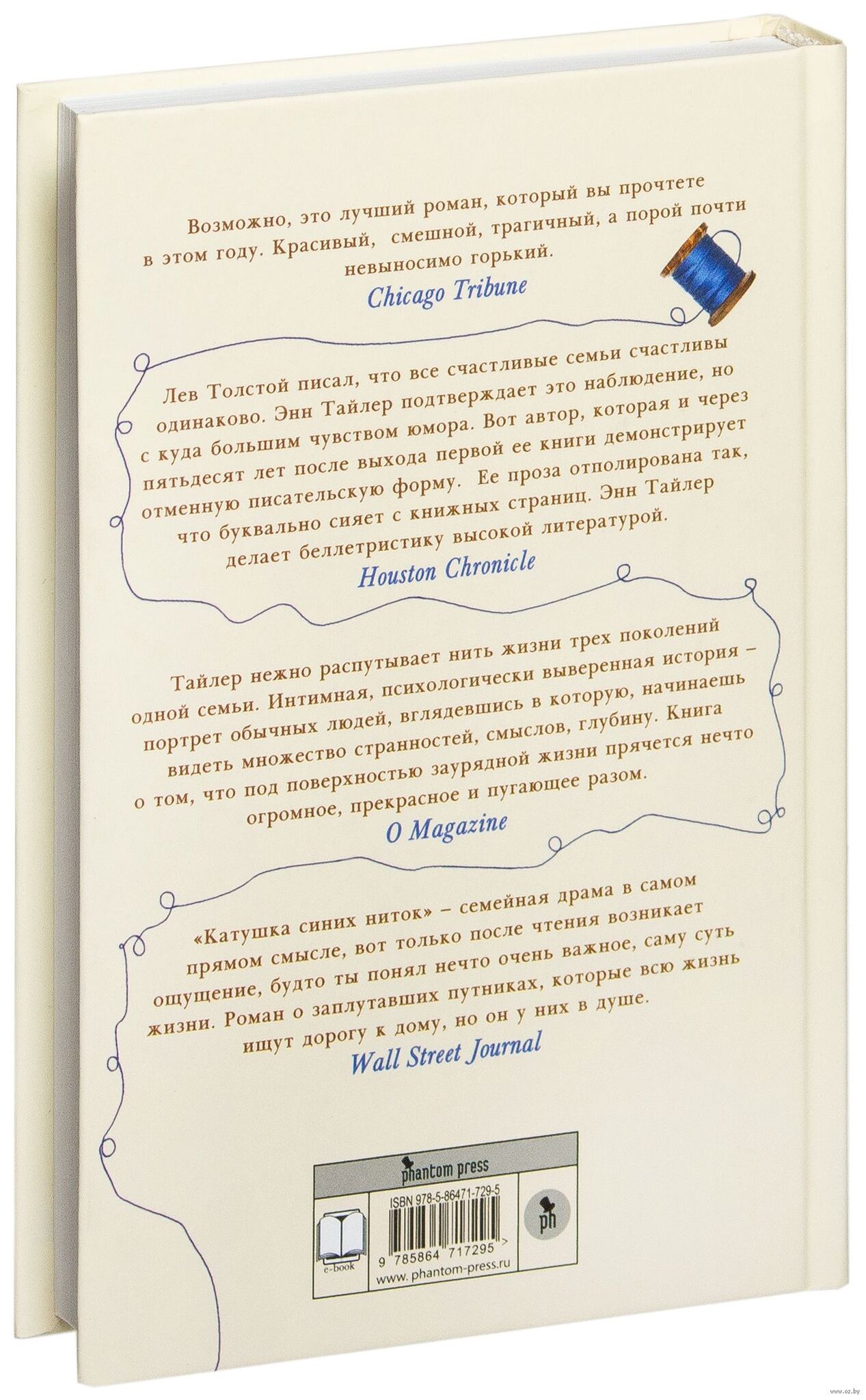 Уитшенки всегда удивляли своей сплоченностью и едва уловимой особостью. Это была семья, которой все по-хорошему завидовали. Но, как и у каждой семьи, у них была и своя, тайная, скрытая от глаз реальность, которую они и сами-то толком не осознавали. Эбби, Ред и четверо взрослых детей в своем багаже имеют не только чудесные воспоминания о радости, смехе, семейных праздниках, но и разочарования, ревность, тщательно оберегаемые секреты. В романе Энн Тайлер, одной из лучших современных писательниц, разворачивается история трех поколений одной семьи — трогательная, но совсем не сентиментальная, драматичная, но смешная, очень глубокая, но простая. Энн Тайлер иногда называют северной Фэнни Флэгг, но ее истории гораздо ближе рассказам А.П.Чехова — тонкие, грустные и забавные и невероятно глубокие. Она рассказывает их тихим, чуть насмешливым голосом, и они еще долго резонируют в душе, о них думаешь, и собственная жизнь предстает в новом свете — куда более наполненной смыслами. Иные книги ослепительно вспыхивают, рассыпаются фейерверками и гаснут, и снова остается черное небо, в котором помаргивают крошечные звезды — романы Энн Тайлер. Энн Тайлер — лауреат Пулитцеровской премии, роман «Катушка синих ниток» в 2015 году номинировался на премию «Букер».