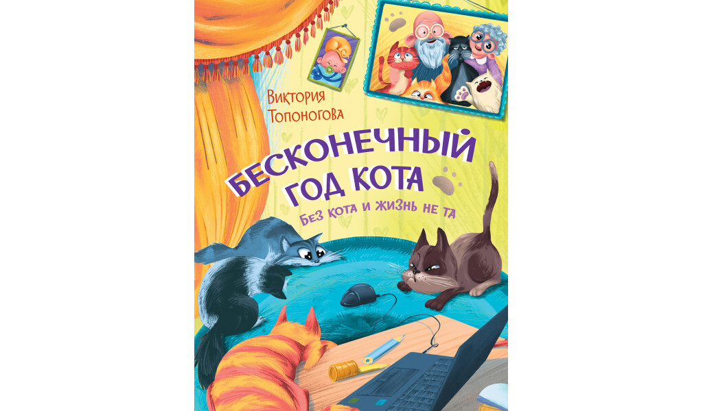 Сборник веселых стихов Виктории Топоноговой про озорных котов «Бесконечный год кота». Виктория Топоногова приоткрывает завесу тайной жизни наших любимых питомцев. Вы узнаете о любимых праздниках котов, об из занятиях в «свободное время», про их «стандарты красоты» и представлениях о прекрасном, о том, какие песни они любят петь и кого ждут в гости, какие сны им снятся и об их любимых видах спорта. Своенравные и покладистые, задиры и тихони, ласковые и дерзкие — такие разные, но одинаково любимые своими хозяевами. Великолепный художник Наталья Бурдина создала целую галерею разнообразных характеров пушистых любимцев. Книга понравится любителям котиков всех мастех. В книге 32 страницы, напечатана на плотной белой бумаге с цветными иллюстрациями на каждой странице. Мягкая глянцевая обложка делает книгу удобной для чтения в дороге. Крупный шрифт подходит для самостоятельного чтения детьми дошкольного и младшего школьного возраста.