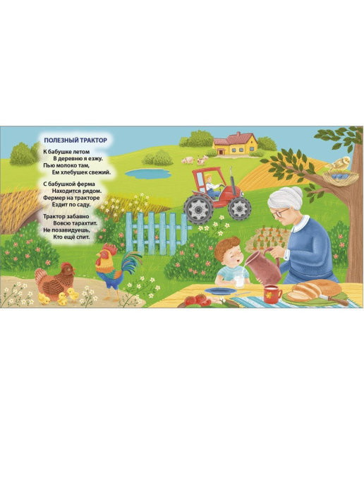 Книжка-картонка в стихах Евгения Сосновского познакомит вашего ребёнка с различными видами транспорта, а также звуками, которые издаёт трактор и другая техника. В чем особенности книги: Изготовлена из плотного картона, со специальным защитным покрытием и скруглёнными уголками, которые не поранят ручки малышу. Удобный формат и скругленные уголки делают книжку-картонку удобной для вашего ребёнка. Что найдем внутри: Стихи, которые малыш будет с удовольствием слушать. Красочные крупные картинки. Важно знать родителям: Рекомендована для детей от 1 года. Книжка-картонка может использоваться как демонстрационное пособие – отлично подойдет для изучения техники, а также поможет пополнить словарный запас малыша.