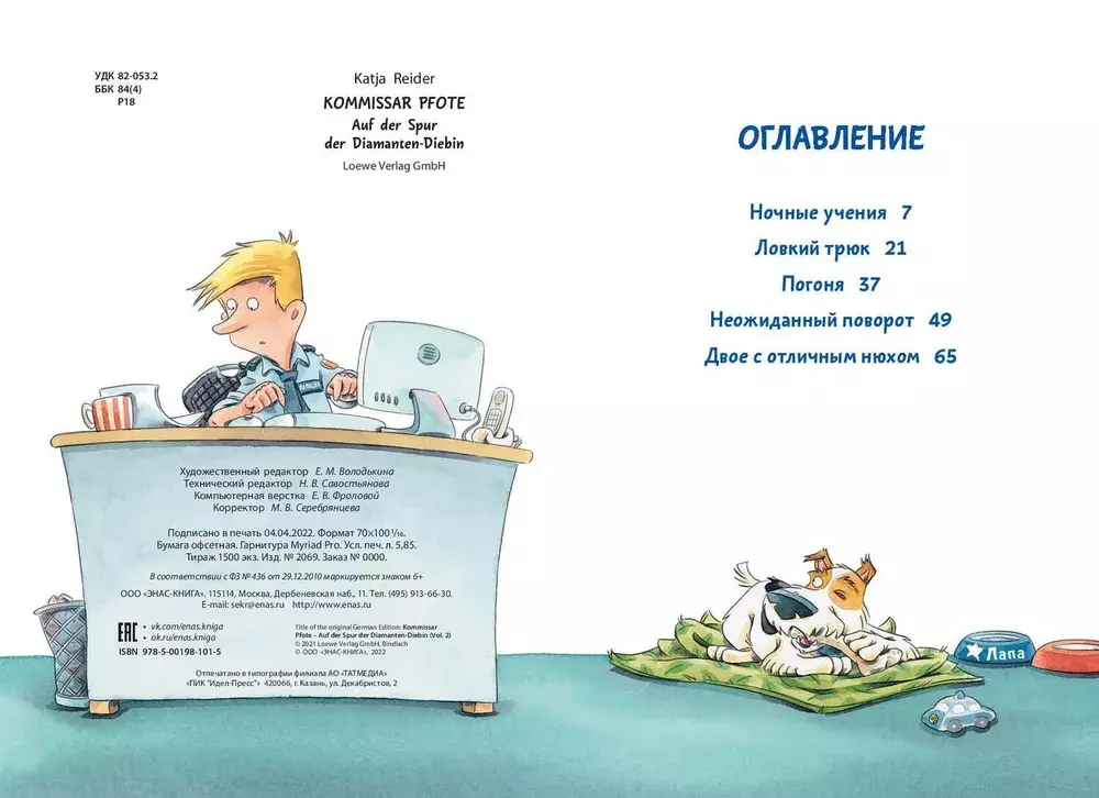 Катя Райдер – автор более ста пятидесяти детских и юношеских книг, которые переведены на многие языки мира. Она очень любит собак. У неё дома живёт пёс Польди, который тоже мечтает стать настоящим полицейским. Дирк Хенниг – известный иллюстратор. У него тоже есть четвероногий друг по кличке Пико. Именно он вдохновил художника на создание образа комиссара Лапы.