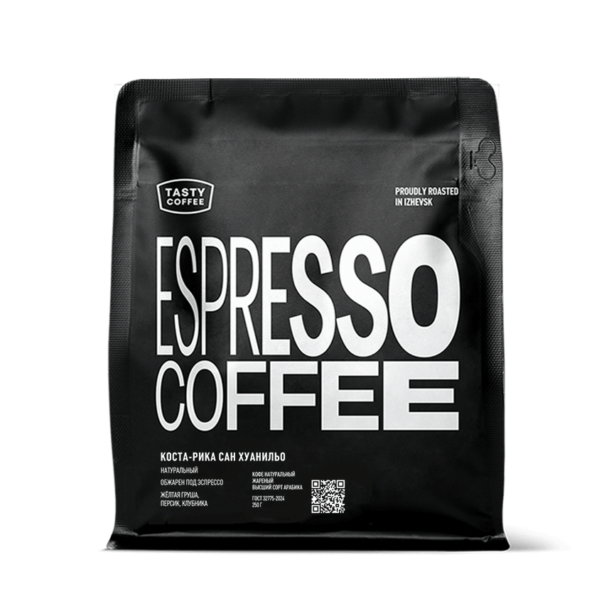 Сочный кофе с нотами жёлтой груши, персика и клубники.