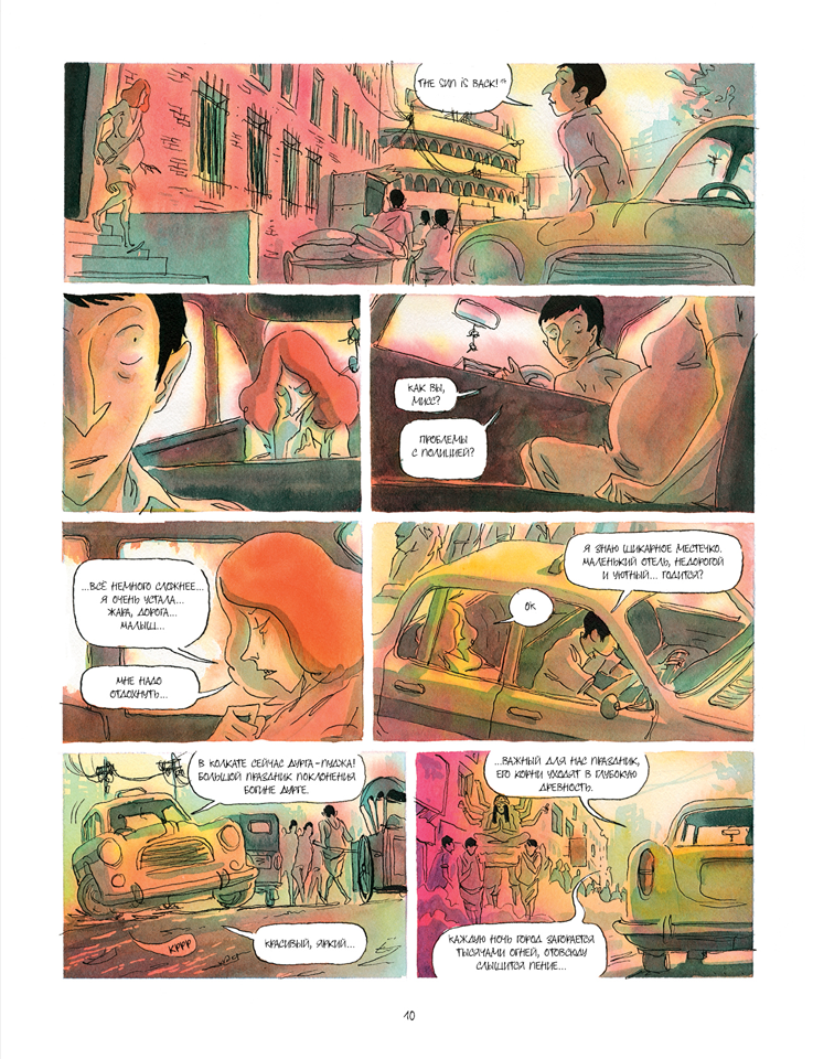 Аэропорт Калькутты. В пёстрой толпе прибывших выделяется Аделаида. С первого взгляда ясно: она приехала сюда не ради селфи на фоне древних храмов. Её жених Матьё уже несколько недель не выходит на связь. Полицейские не спешат с поисками, но Аделаида находит верного помощника в лице молодого и сообразительного таксиста Имрана. Сражаться придётся не только с коррумпированными местными чиновниками, но и с крупной транснациональной корпорацией, готовой на всё ради своих интересов. Блуждая по городским лабиринтам, она чувствует: Матьё рядом, и ему грозит опасность... Захватывающий сценарий Эдди Симона и атмосферные рисунки Пьера-Анри Гомона не дадут читателю шанса расслабиться!