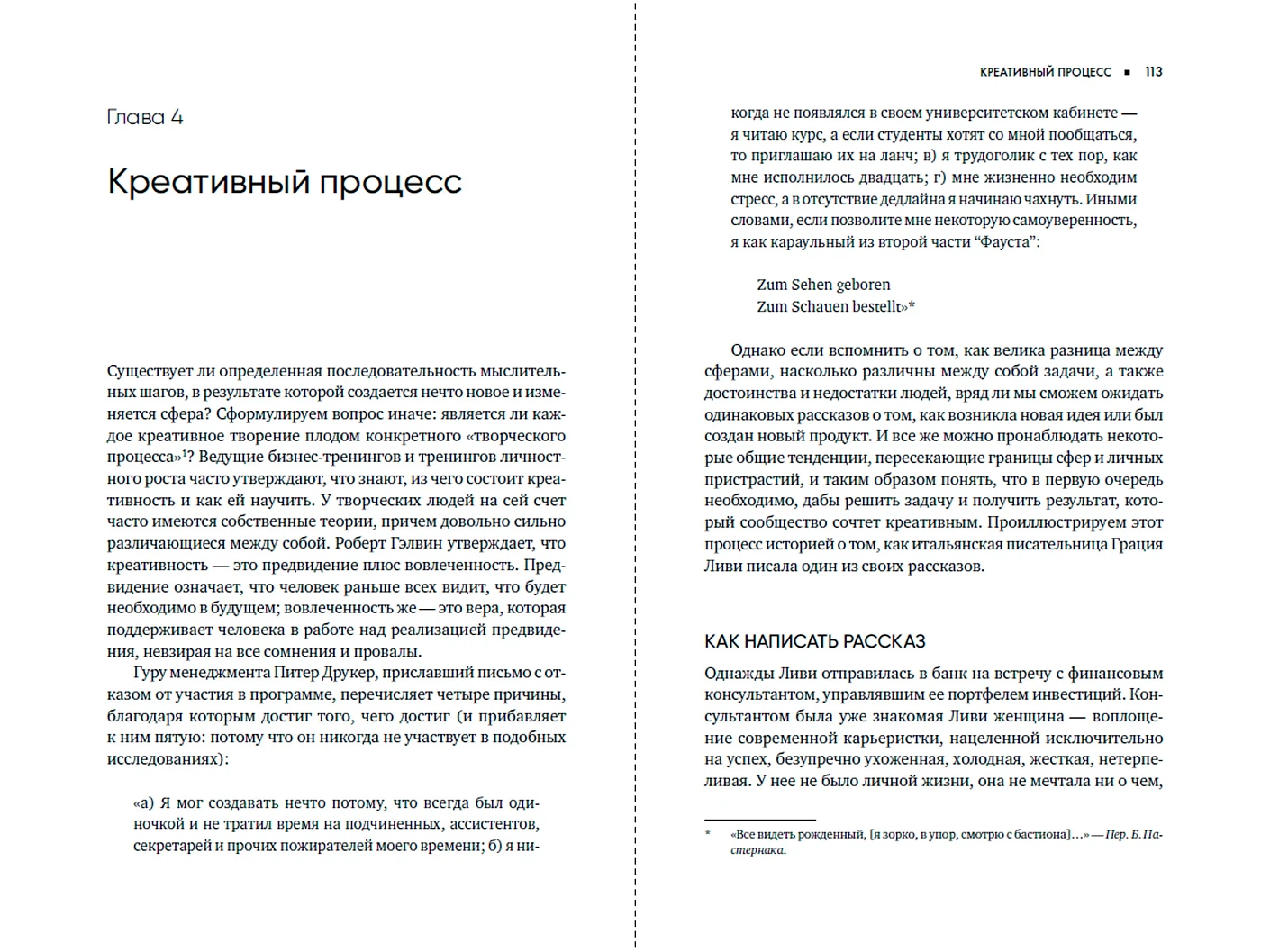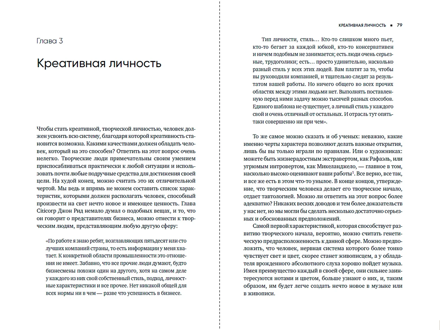 Творческий человек — что в нем особенного? И почему творчество делает жизнь насыщеннее и счастливее? Талантливые художники, музыканты, писатели, ученые, лидеры крупнейших корпораций — профессор Михай Чиксентмихайи исследовал судьбы 90 величайших людей ХХ столетия. Это исследование остается самым глубоким научным трудом, посвященным креативности, и оно развеивает множество расхожих стереотипов о том, что делает человека креативным и что стимулирует творческие порывы. Используя теорию потока, ученый показывает, что такое креативный процесс и почему креативность столь необходима человеку. Книга будет полезна и родителям, которые стремятся развить способности своего ребенка, и тем, кто интересуется проблемами творчества, и, наконец, всем, кто пытается понять, как стать счастливым.