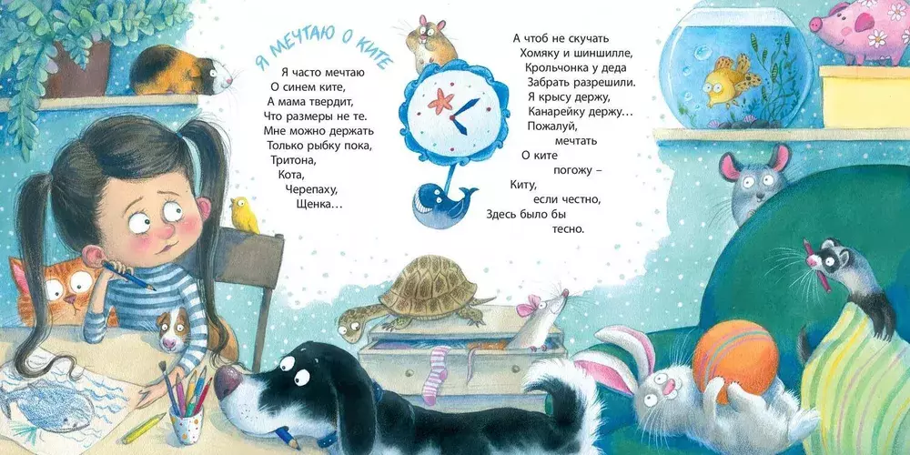 В этом светлом, теплом и приветливом доме нашлось место для множества зверюшек: тритона, кота, черепахи, щенка, хомячка, шиншиллы, крольчонка крысы, канарейки… Только синий кит пока остается мечтой хозяйки: ему здесь было бы тесновато… О чудесном доме рассказывают веселые стихи Натальи Карповой и озорные рисунки Любови Ерёминой-Ношин. Приходите, вам тут тоже будут рады!